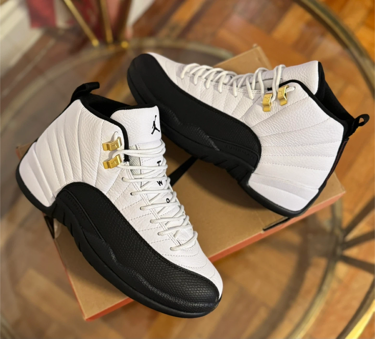 Selling a pair of Air Jordan 12 Retro sneakers in a classic white and black colorway. These shoes are in great condition and ready for a new home. A stylish and iconic addition to any sneaker collection!
