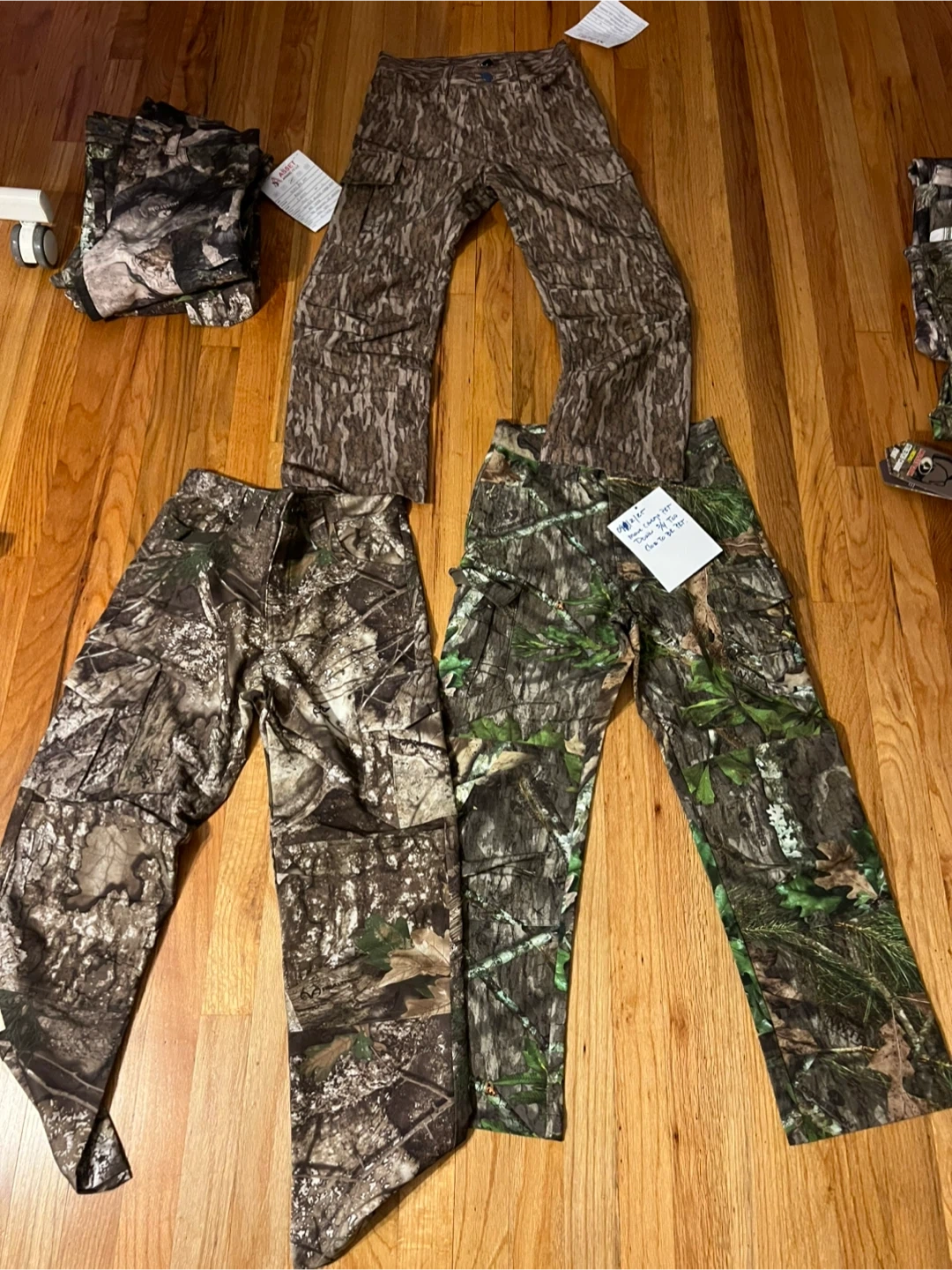 Bundle of Mossy Oak camouflage pants. Official licensed product. Men’s size medium & 2XL and kids size large. All new with tags