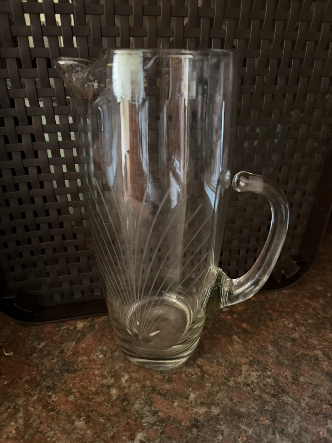 Buy & SellGlass Pitcher with Etched DesignGlass Pitcher with Etched Design$7Clear glass pitcher featuring an etched sunburst or fan design at the base. It has a sturdy handle and a pour spout. Made of glass.WHERE TO MEETCheck LocationView MapSELLERLupeUnion100 reviews0 chats·1 favorites·7 viewsSEND CHAT TO SELLERHi Lupe! I’m interested in your listing.Hi Lupe! I’m interested in your listing.Get the Karrot app to chatSign In to chat