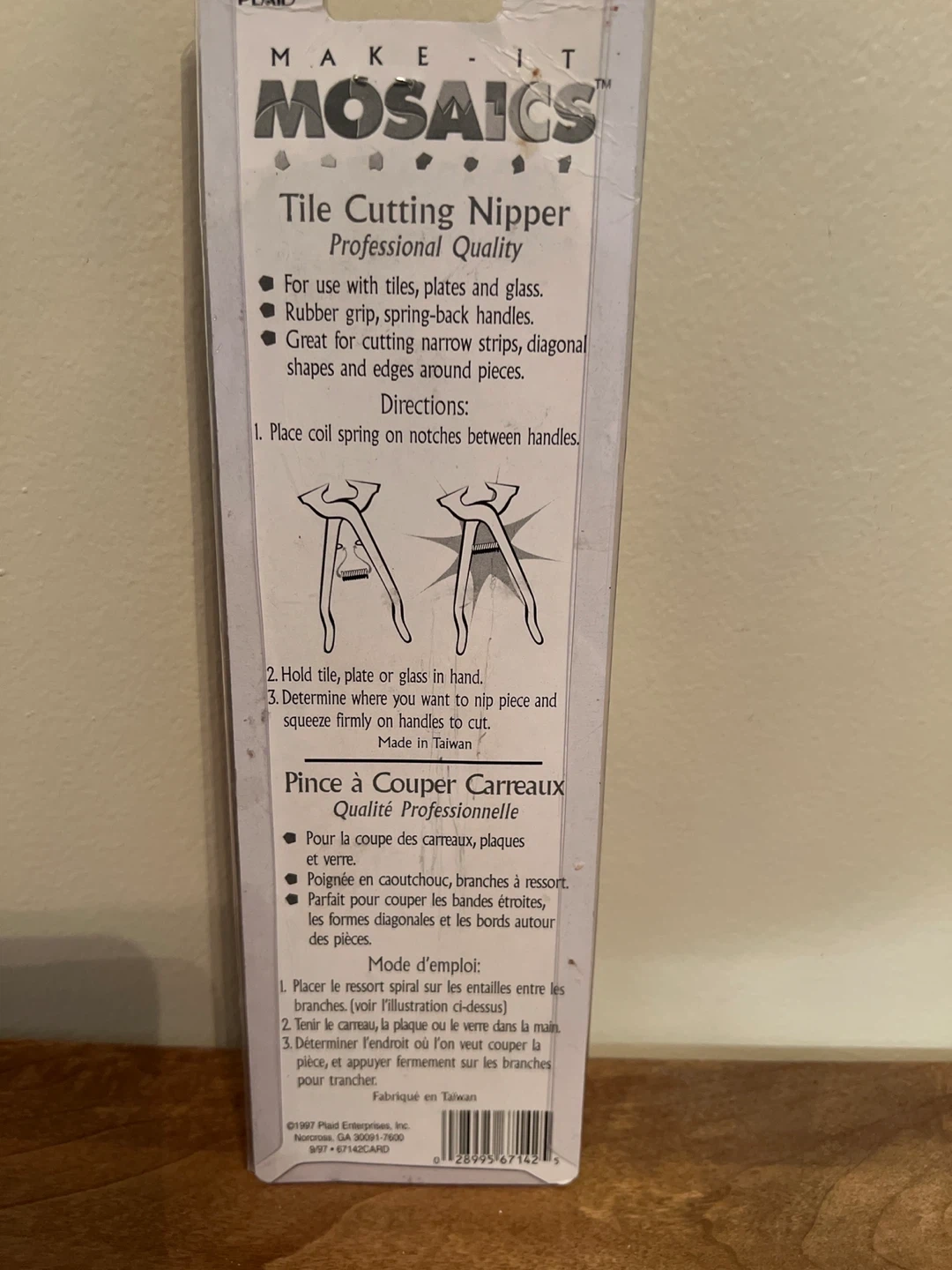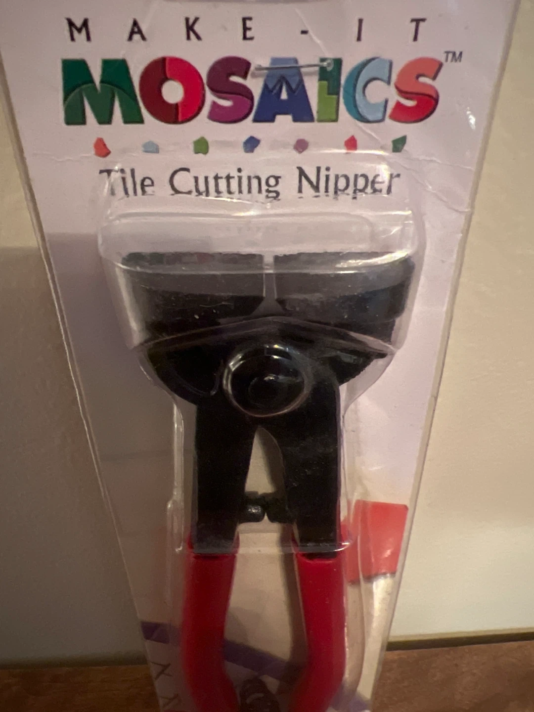 I'm selling a brand new Make It Mosaics Tile Cutting Nipper! It's professional quality and great for use with tiles, plates, and glass. It also has a rubber grip with spring-back handles. Perfect for cutting narrow strips, diagonal shapes, and edges around pieces