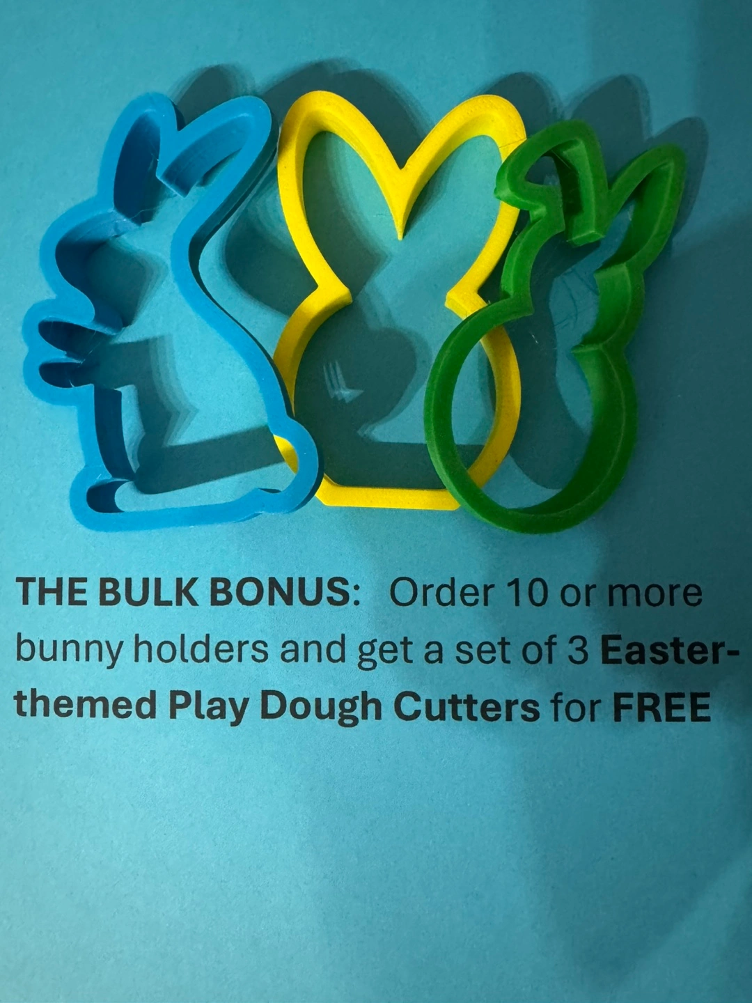Ordered 10 or more and get 3 Easter themed Play Dough Cutters for FREE