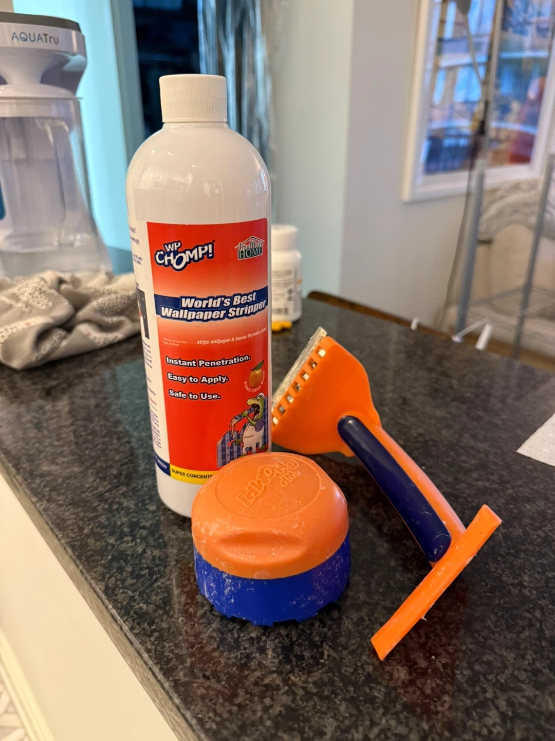 60Selling a bottle of WP Chomp! World's Best Wallpaper Stripper. Easy to apply and safe to use. Perfect for stripping wallpaper and leaving the walls clean! It worked on a couple of my walls and this is the extra as well as the tools needed.