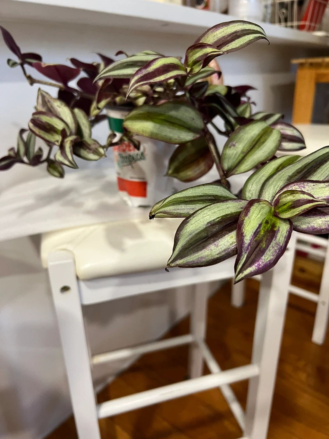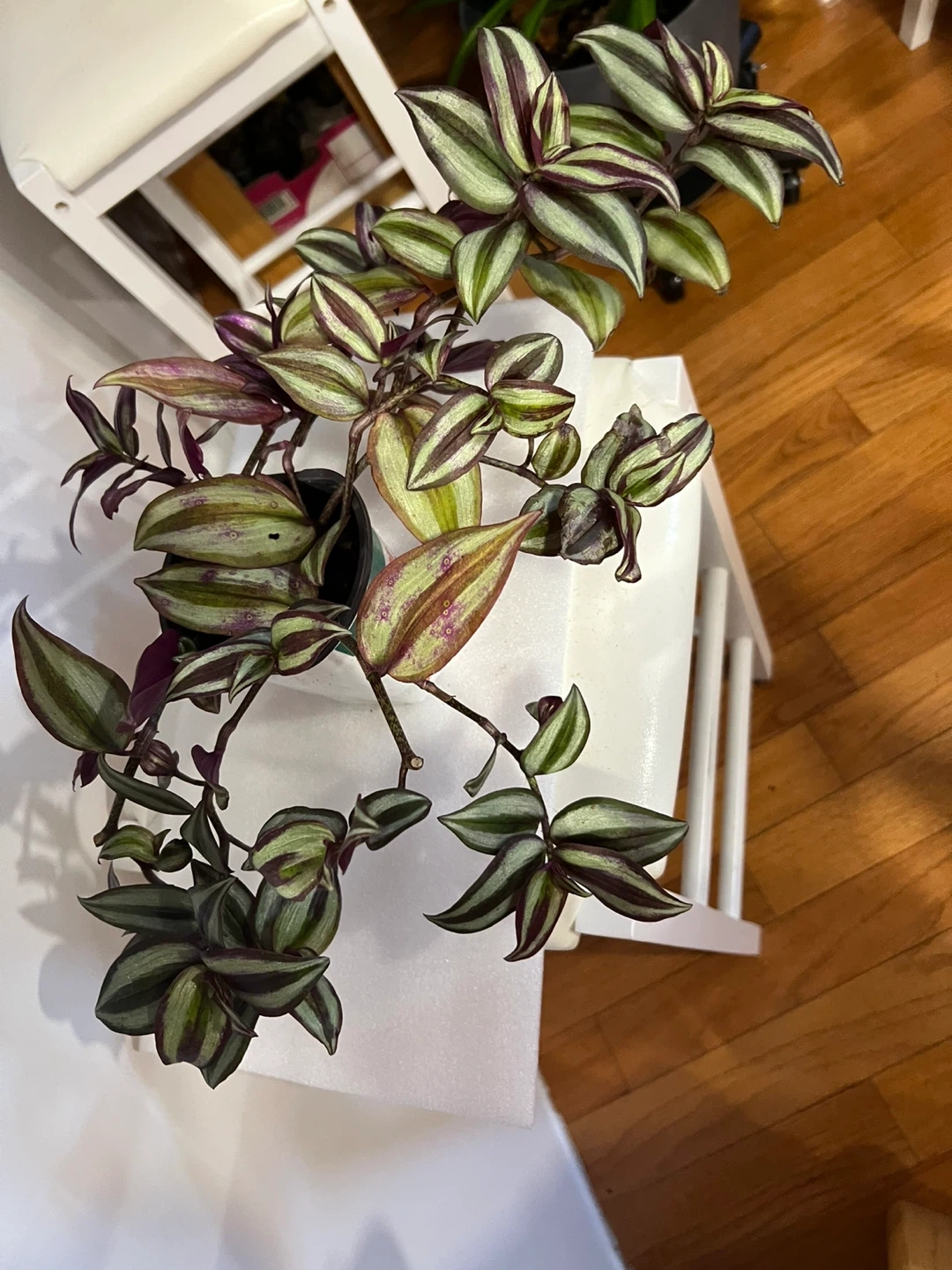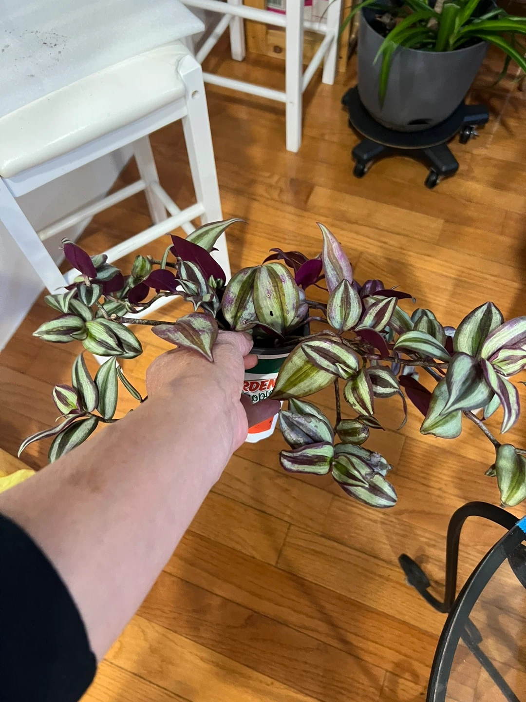130I'm selling a Wandering Jew plant in a Garden Tropics container. The plant has beautiful striped leaves with shades of green, silver, and purple. It's a vibrant and easy-to-care-for houseplant that will add a touch of color to any room.pick up in bay ridge 11220 and please check my other listing.