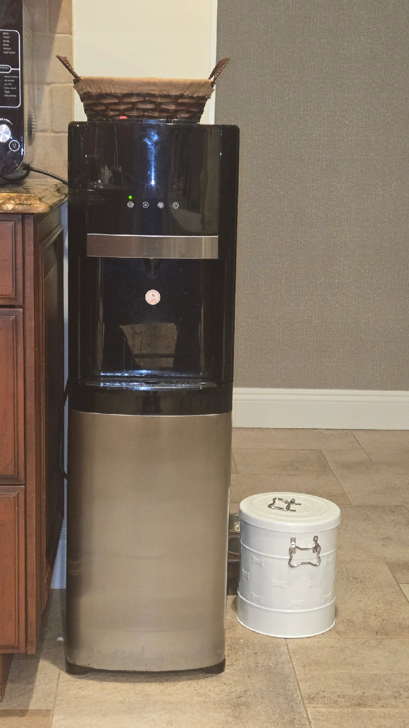 Selling a bottom loading, used water cooler in black and silver color. It's in good condition and ready to use!