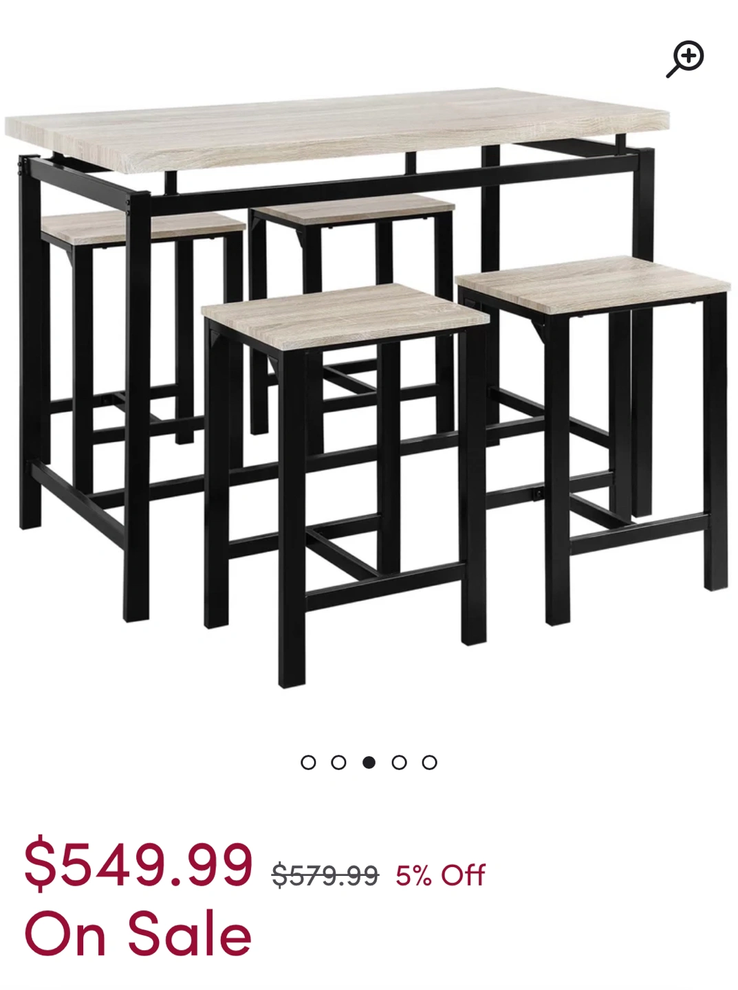 Height Dining/Island Table in White Oak Colour with 4 matching bar stool chairs included!
