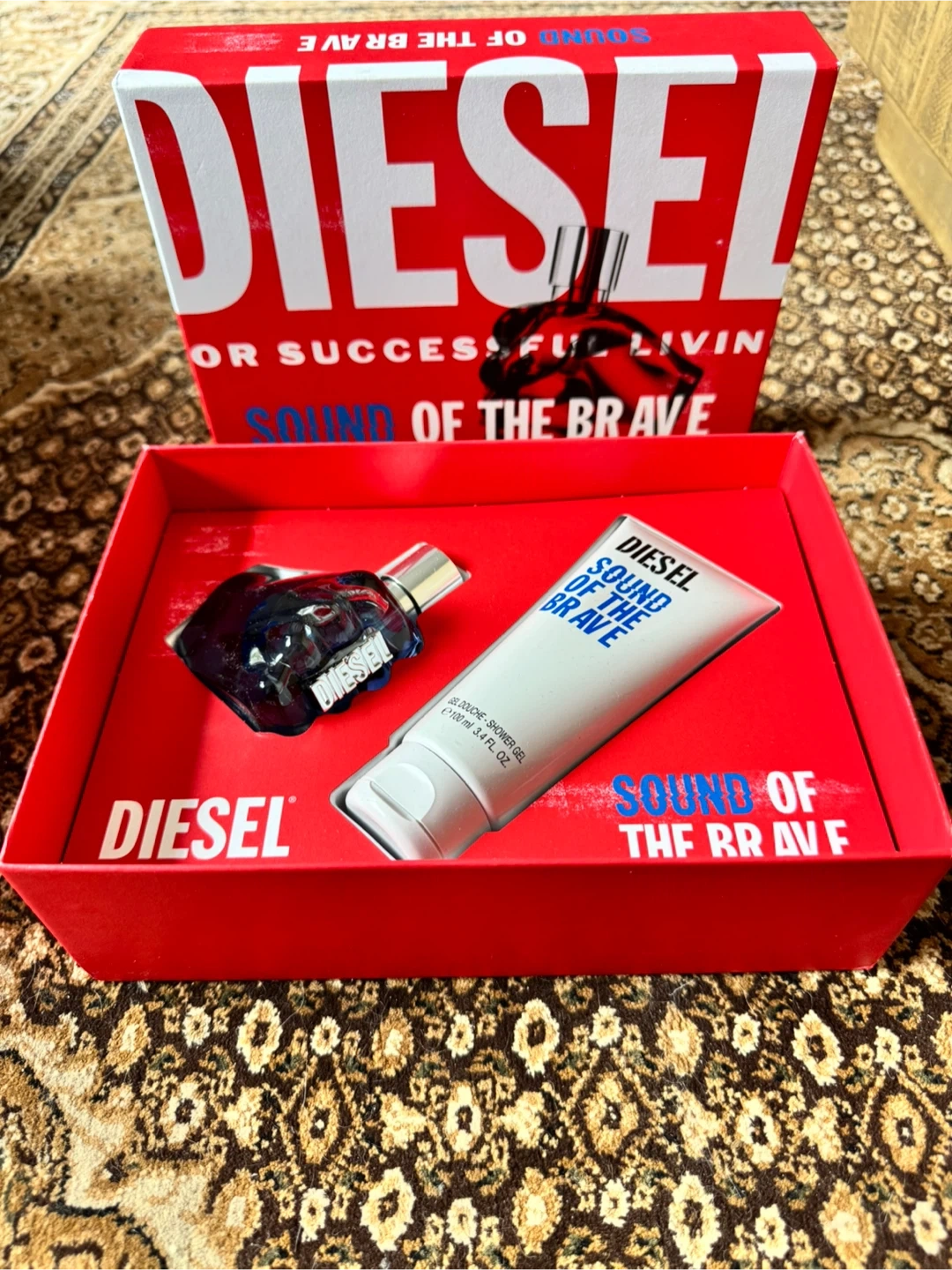 Selling a Diesel Sound of the Brave gift set, includes a bottle of cologne and shower gel. Comes in the original box!