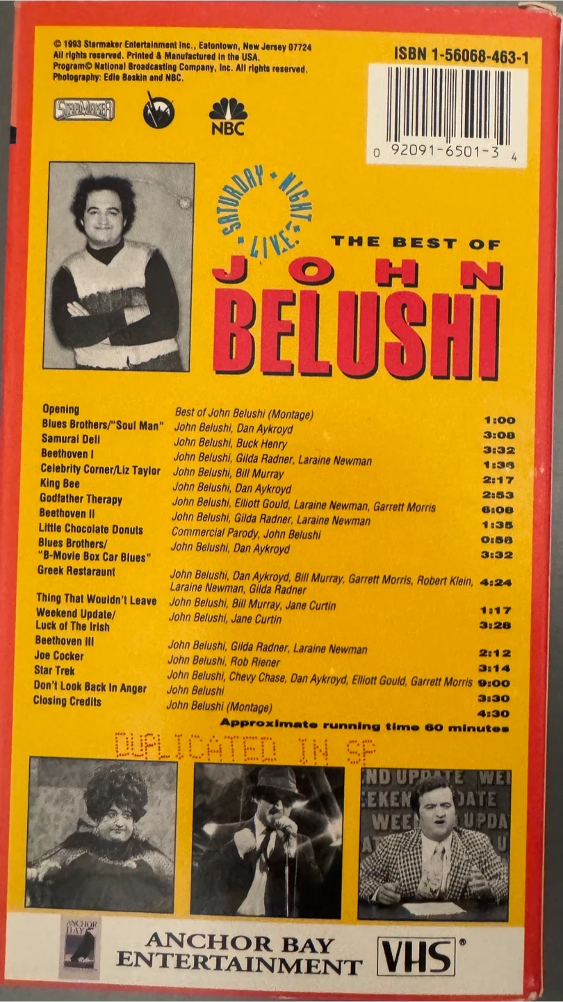 “The Best of John Belushi - The Best of Saturday Night Live”. Vintage VHS includes 16 classics including Blues Brothers, Greek Restaurant and King Bee. A must have for any collector of Belushi.