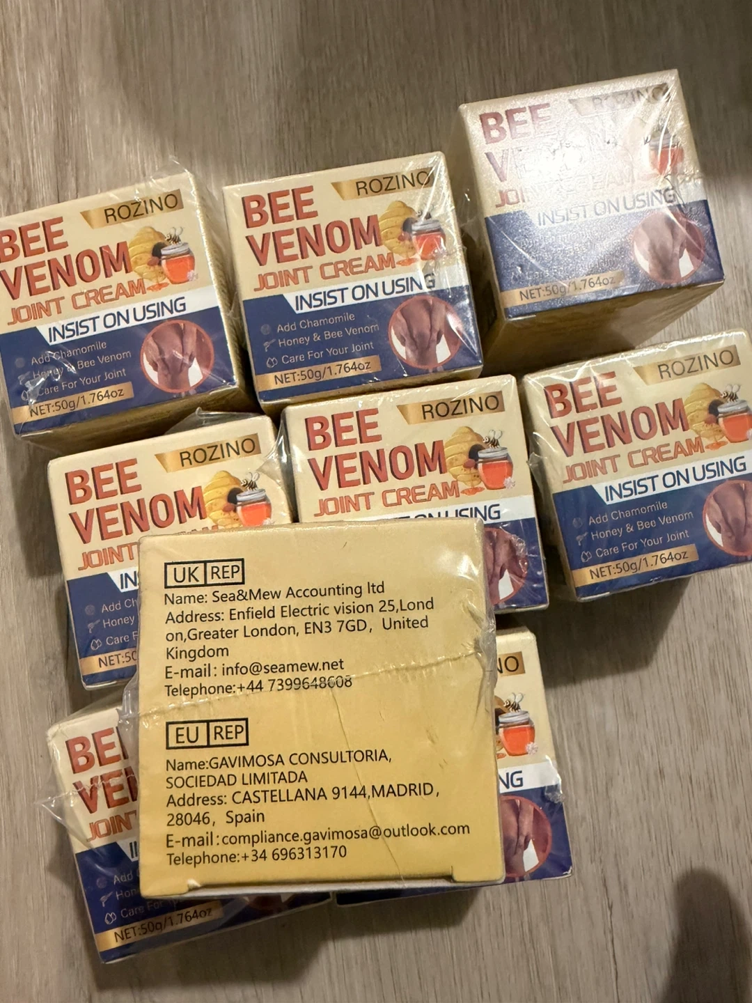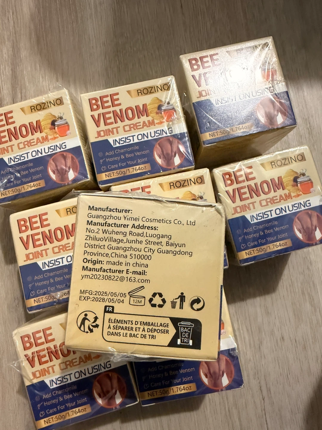 This ROZINO Bee Venom Joint Cream comes in a 50g container. It's formulated with bee venom and honey. This cream is made in China.
