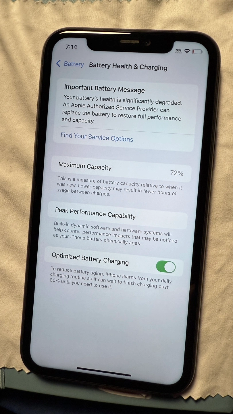 Battery health is 72%.