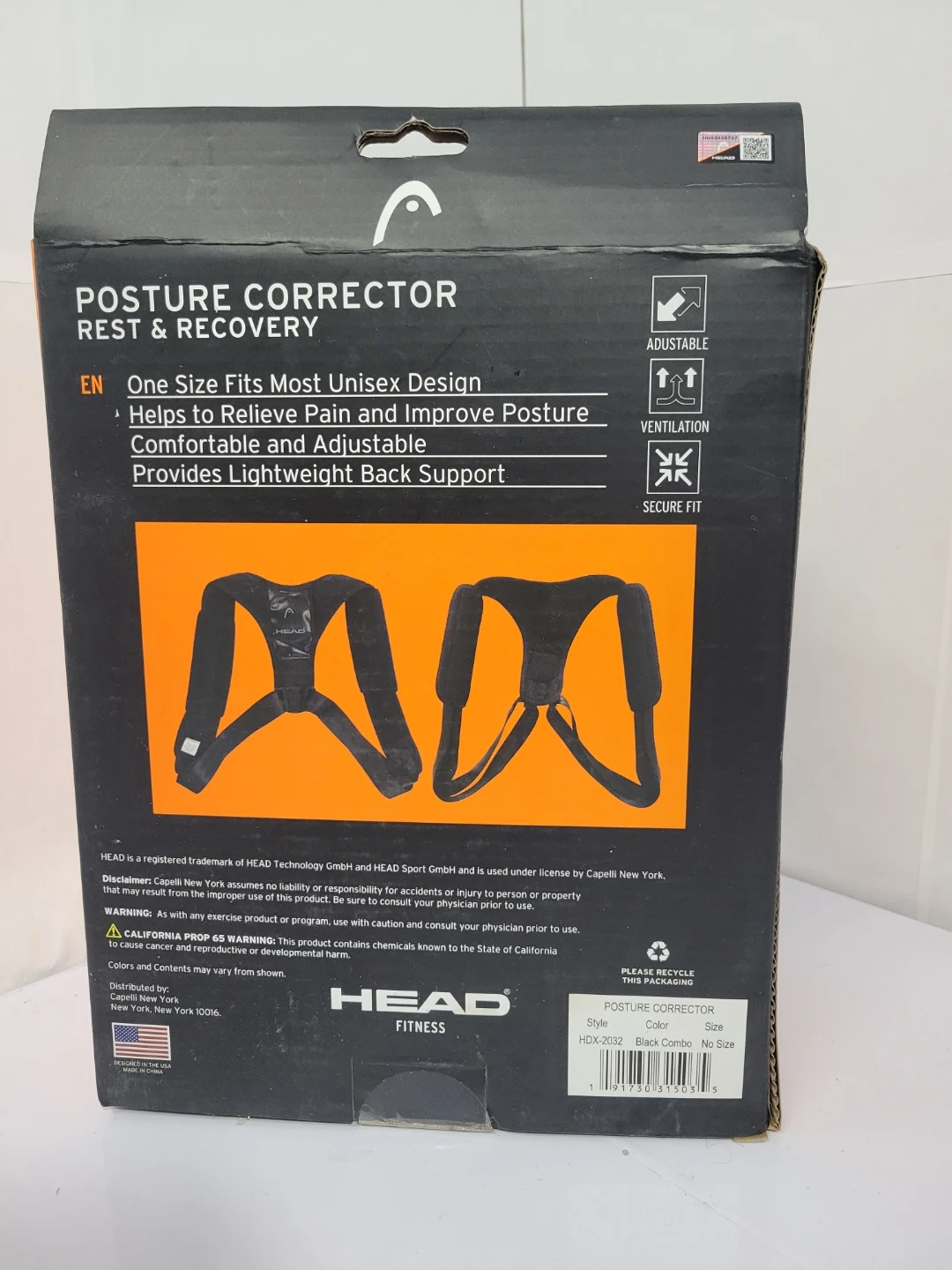 This HEAD Fitness posture corrector is designed for one size to fit most unisex users. It's comfortable, adjustable, and provides lightweight back support. It helps relieve pain and improve posture. New, never used