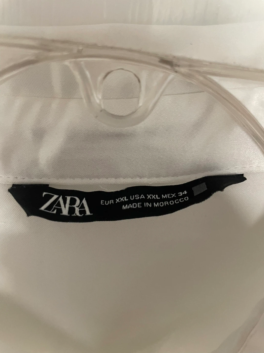 Selling a Zara white shirt dress in size XXL. It's made in Morocco and has a lovely flowy design. Perfect for a casual or dressy occasion!