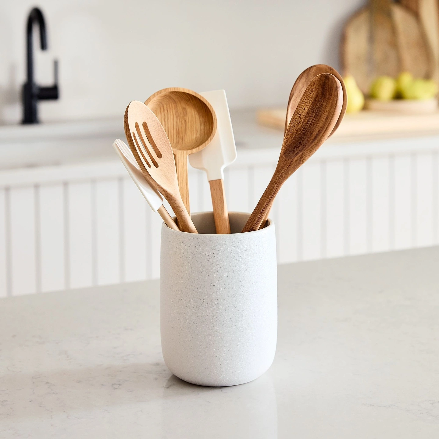 West Elm glazed kaloh stoneware utensil holder. Like New. No Flaws $39.50 plus tax retail 4.9 inches diameter 6.5 inches height