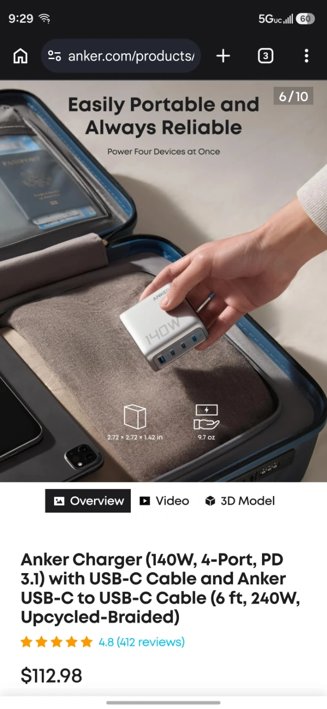 Got this premium charger in a promotional bundle and I don't need it. It is completely brand new and untouched. The retail price for this exact set is $113 on Anker's website, but I’m selling it for $90 for a quick sale.