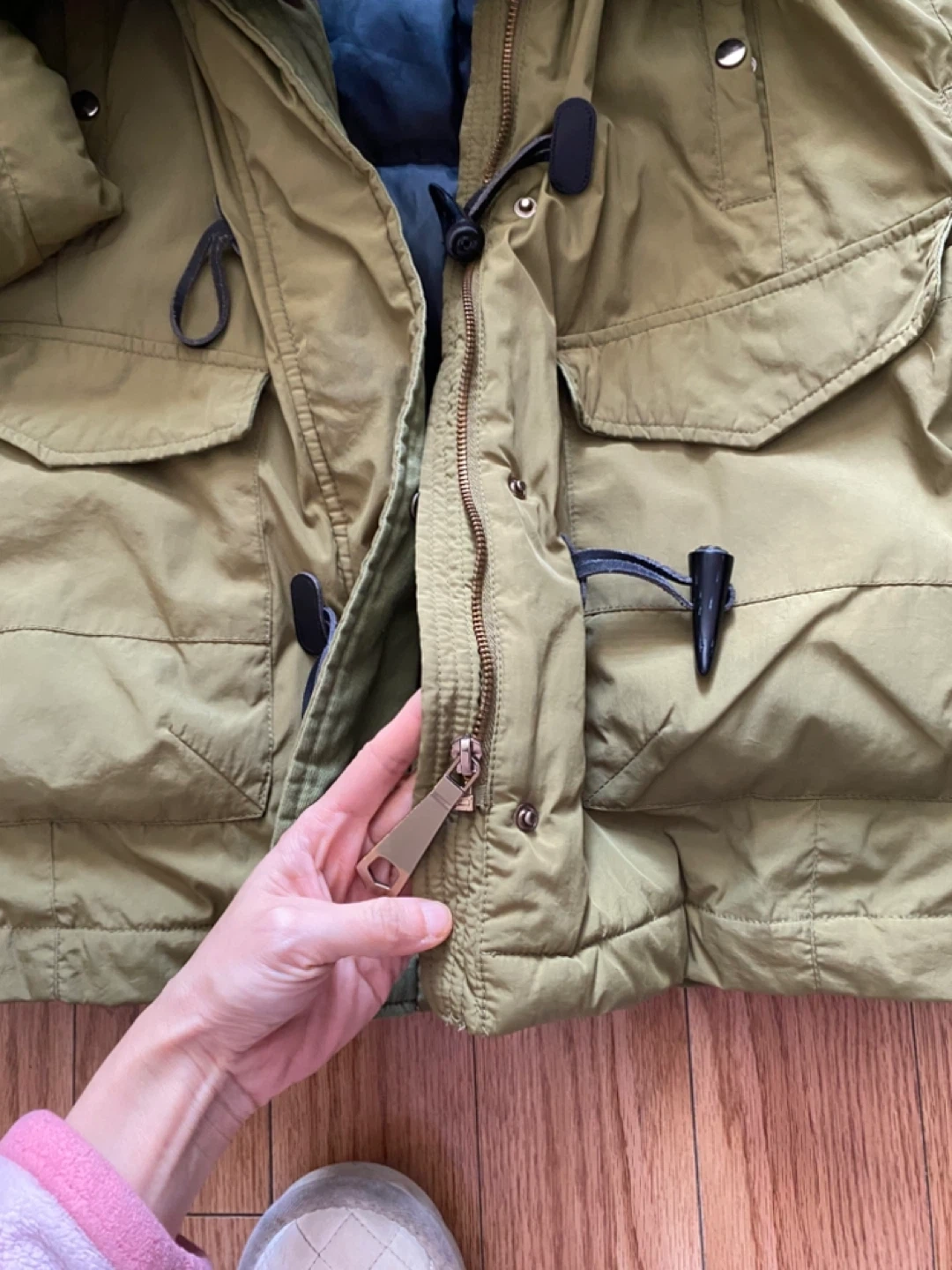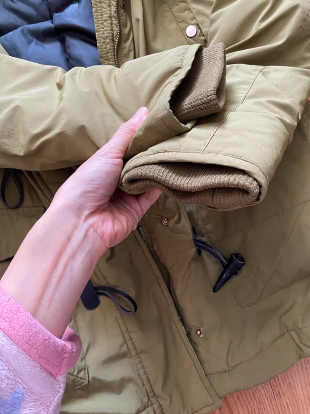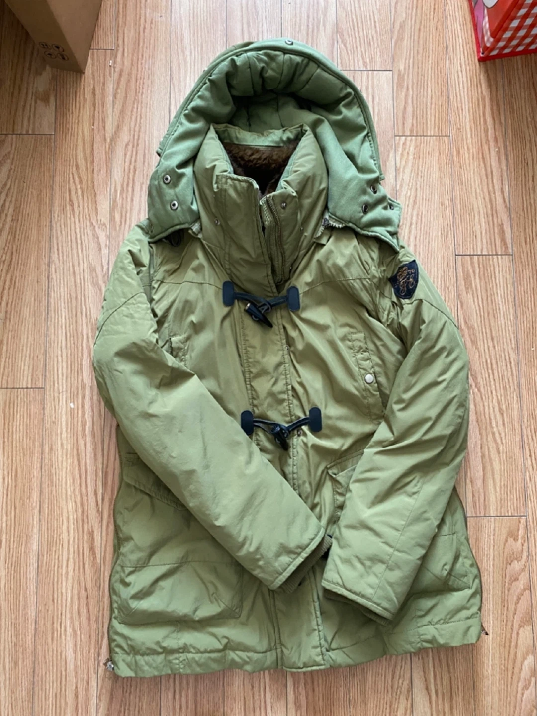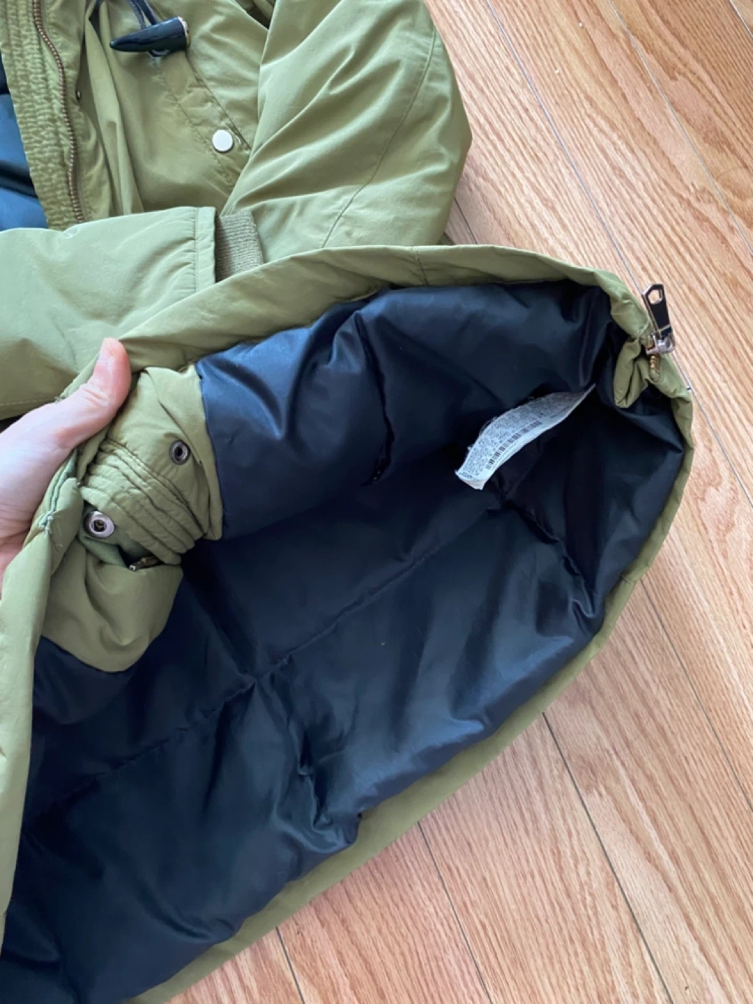 Selling a Zara Basic winter down jacket in a lovely green colour! It's in great condition and perfect for the colder months. The jacket features a cozy faux fur collar and toggle closures. It has a warm lining to keep you snug and stylish all winter long