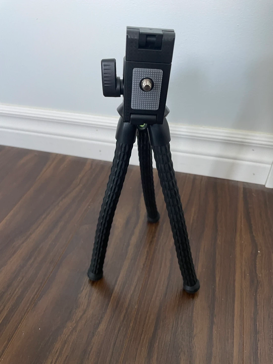 This new black tripod features flexible legs for versatile positioning. It has a standard screw mount for attaching cameras and a clip for holding smartphones. It's a handy accessory for stable shots on the go! Porch pick up Yonge and 16th or Yonge and finch