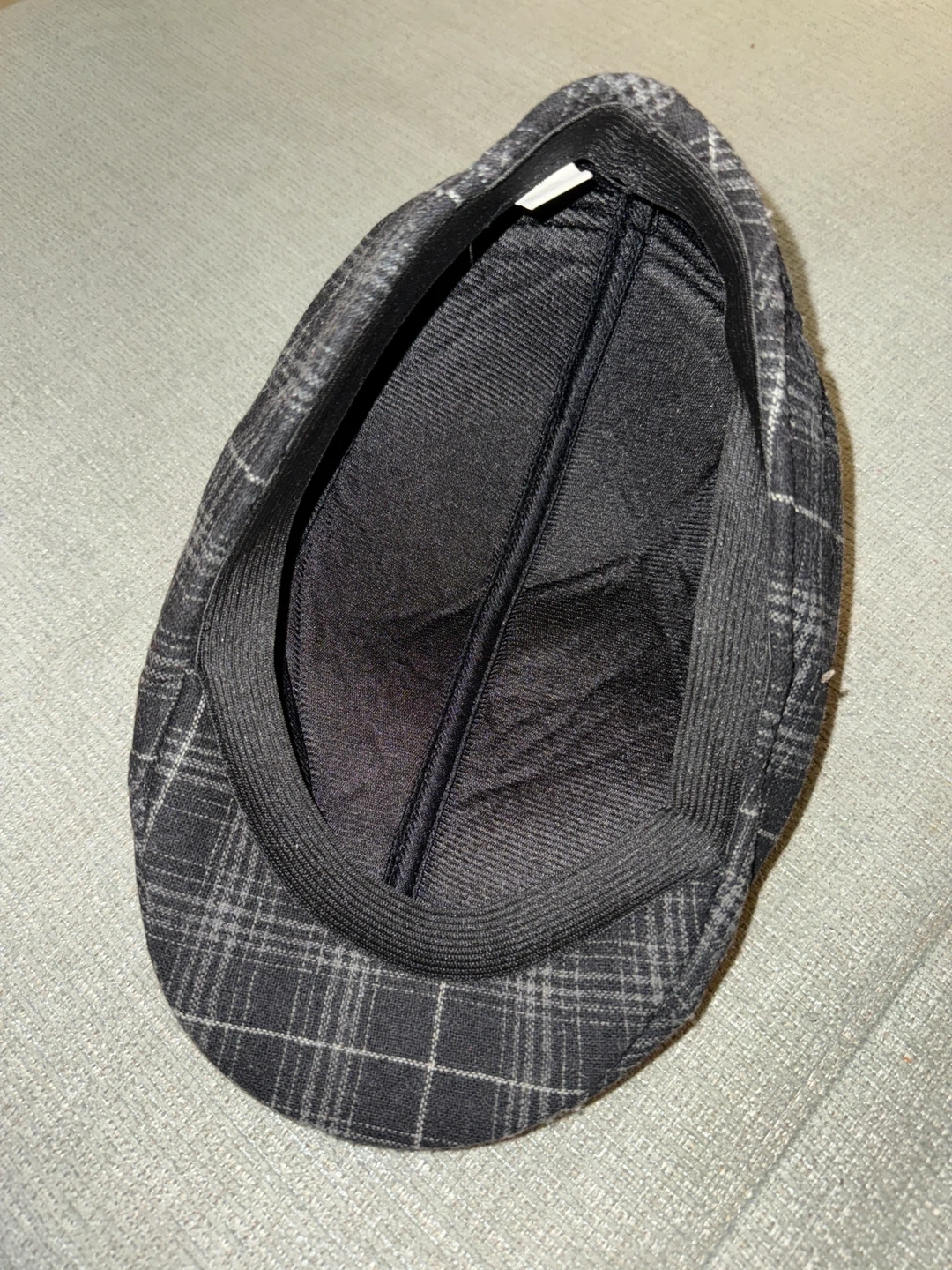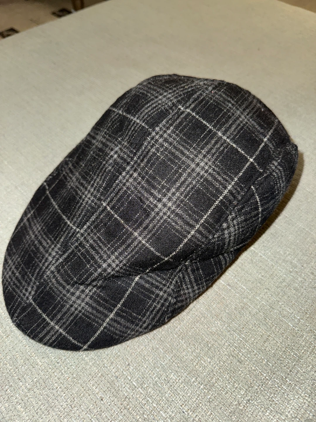 This men's flat cap features a classic black and grey plaid pattern. It's made of 60% cotton and 40% polyester. Size Medium. Smoke-free home. Pick up/Cash only๐๐ฝ