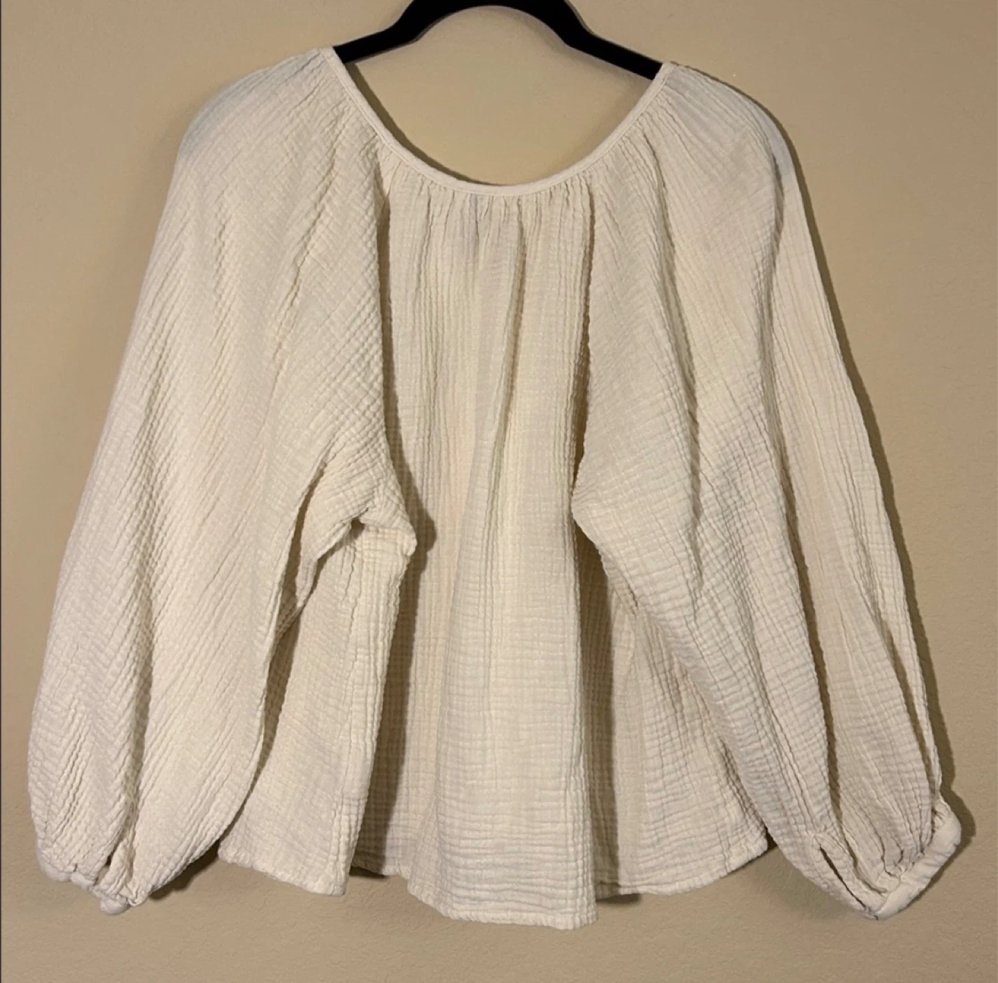 Woman’s blouse from Target, size L, cream/off white colour, 100% cotton, flowy, with pretty sleeves and tie front detail, only worn once.