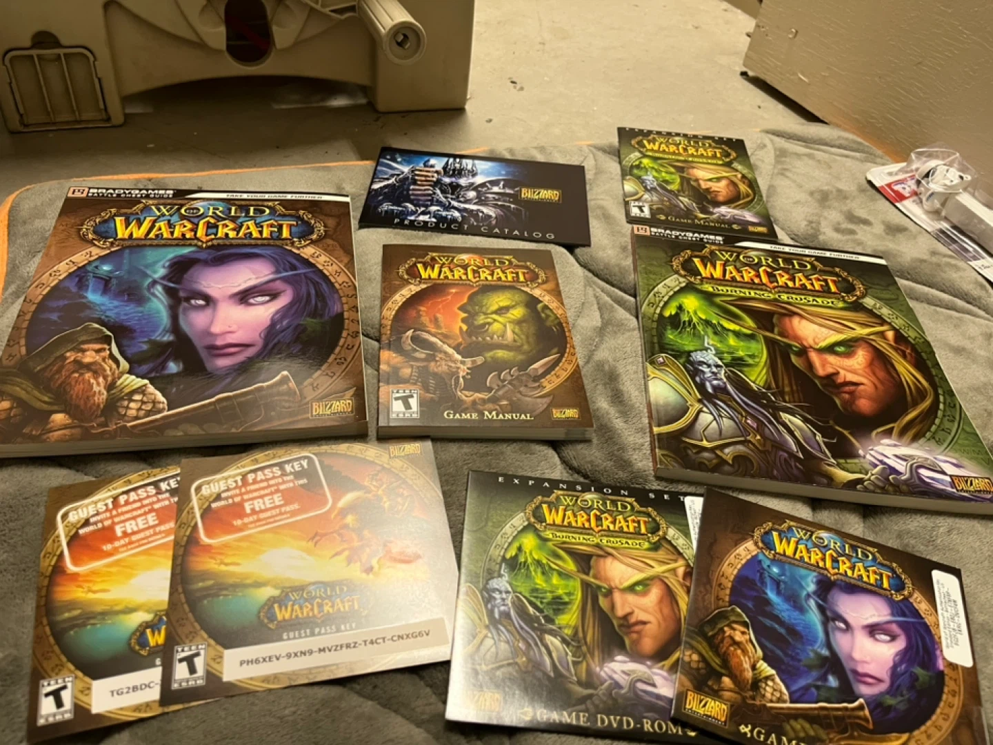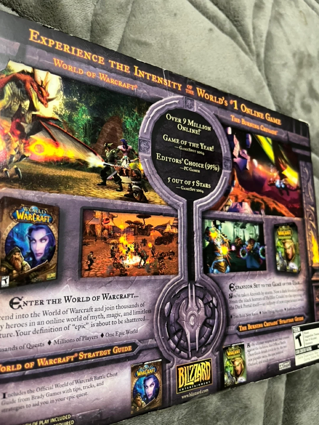 This is the World of Warcraft Battle Chest for PC. It includes the original game, Burning Crusade expansion, and strategy guides. It also comes with guest pass keys.