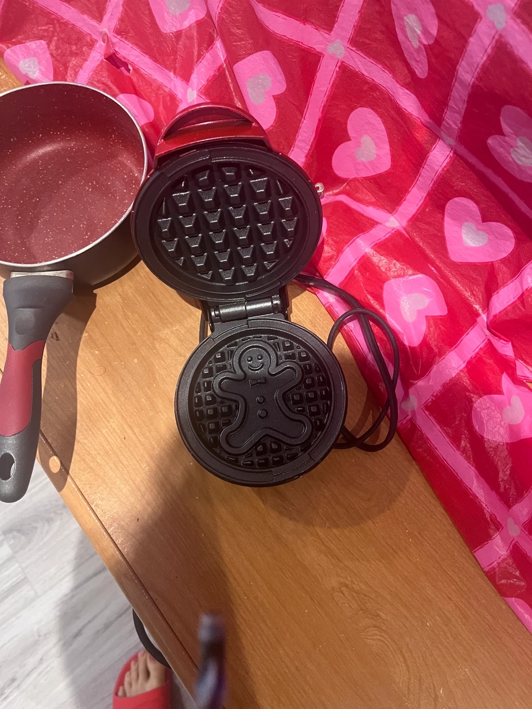 I'm selling a DASH mini waffle maker! It's in great condition and makes adorable gingerbread-shaped waffles. Perfect for a fun breakfast or festive treat