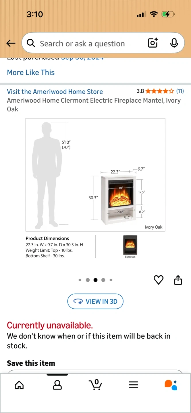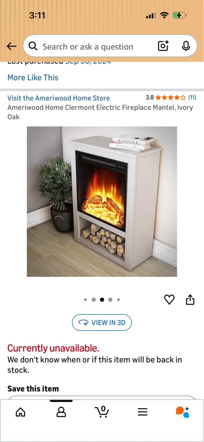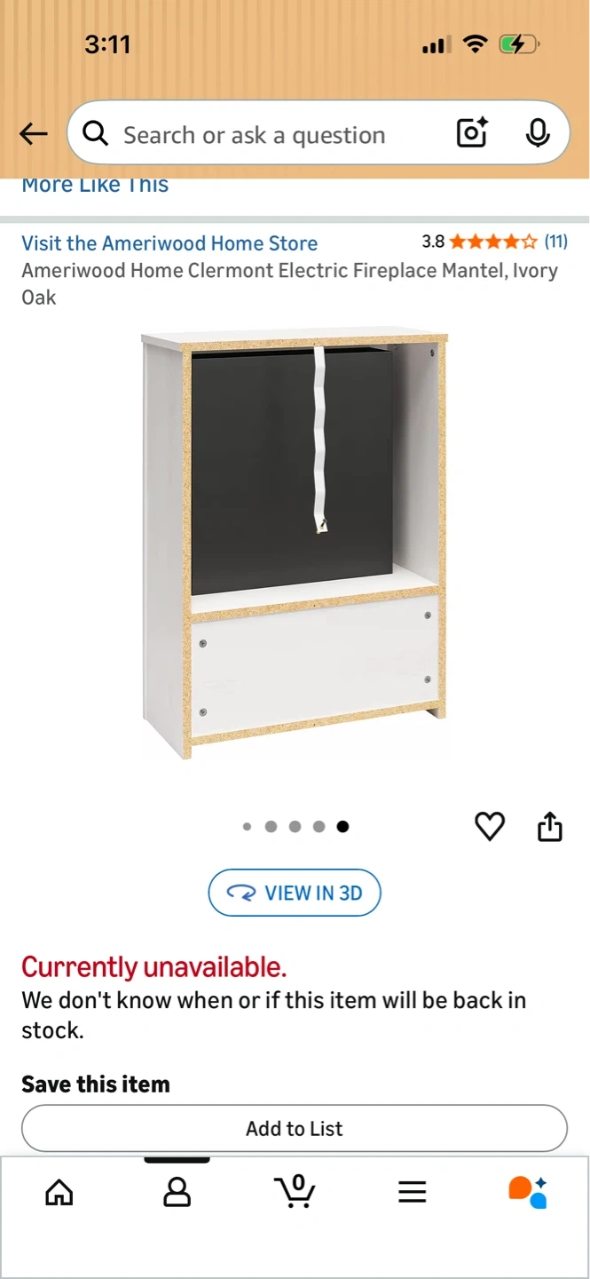 This Ameriwood Home electric fireplace mantel provides a cozy ambiance. It's an Ivory Oak finish with a functional bottom shelf.