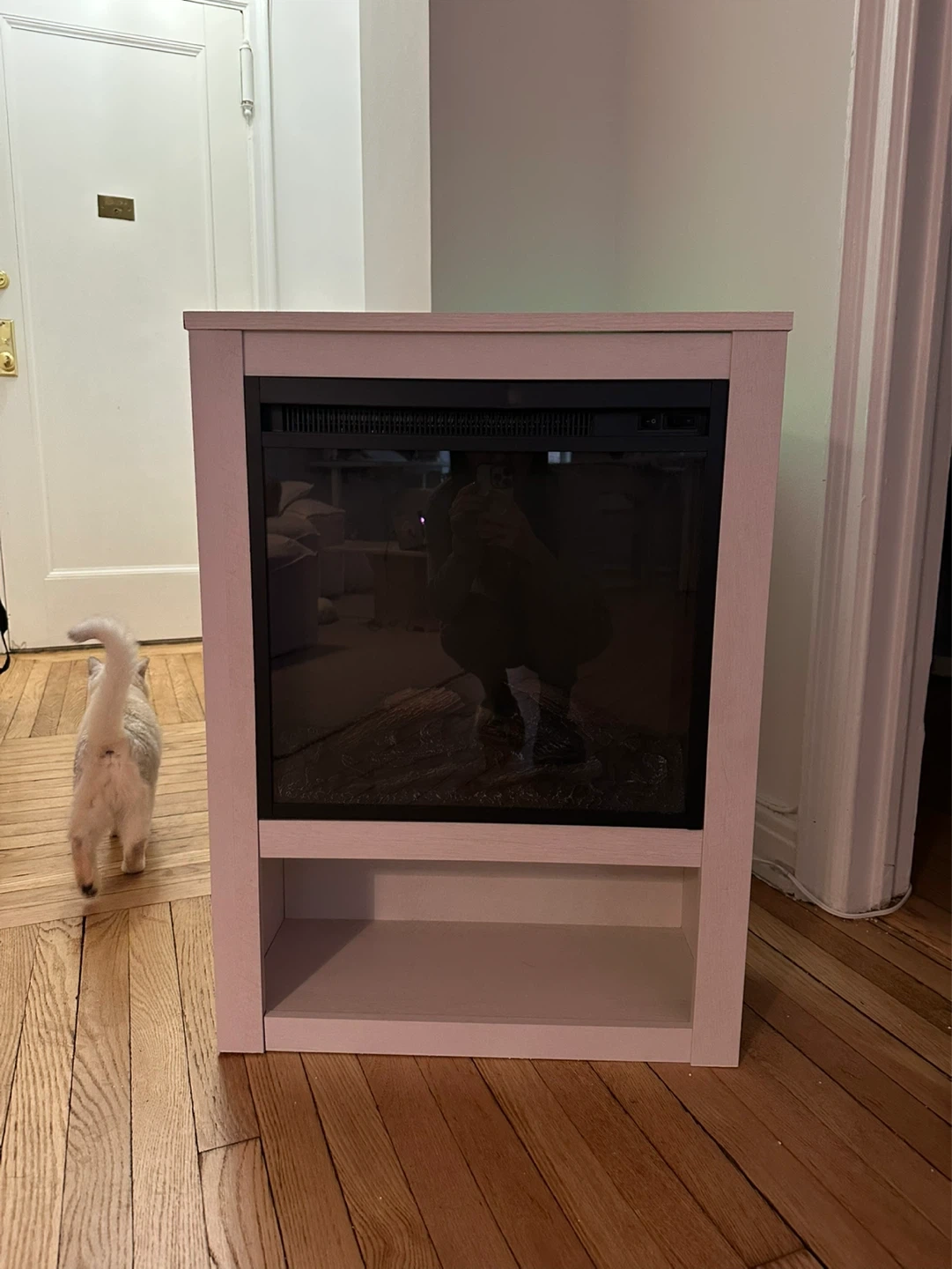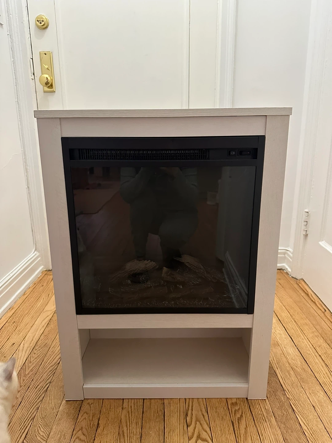 Moving sale! Modern wood finish electric fireplace heater with great aesthetic. Can be used just as a fireplace without using the heater.