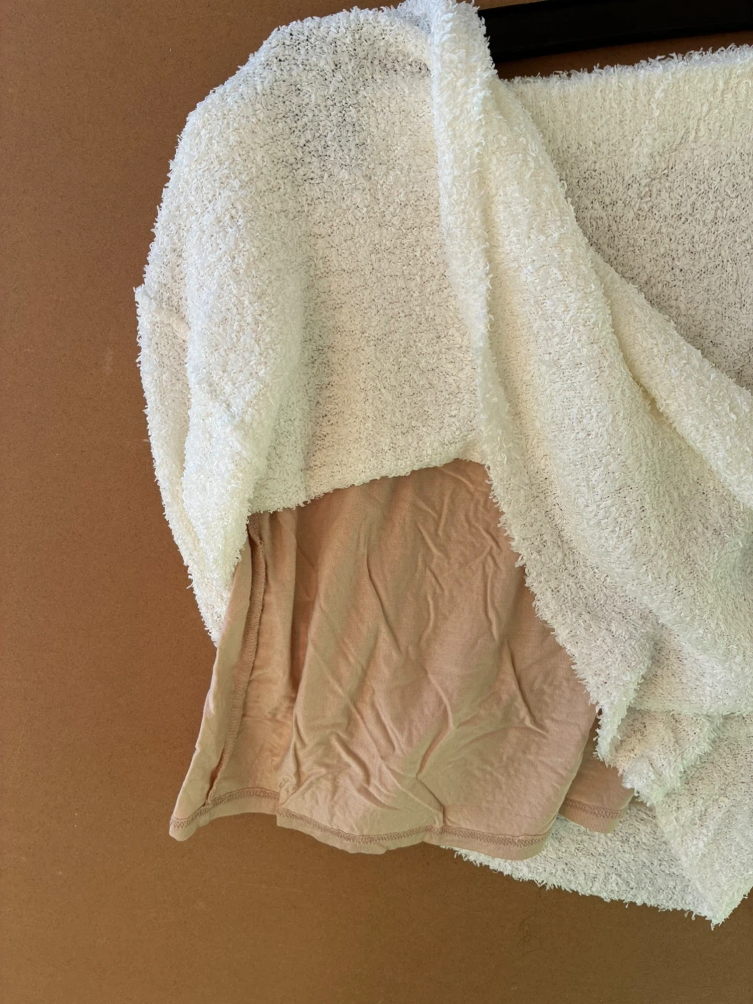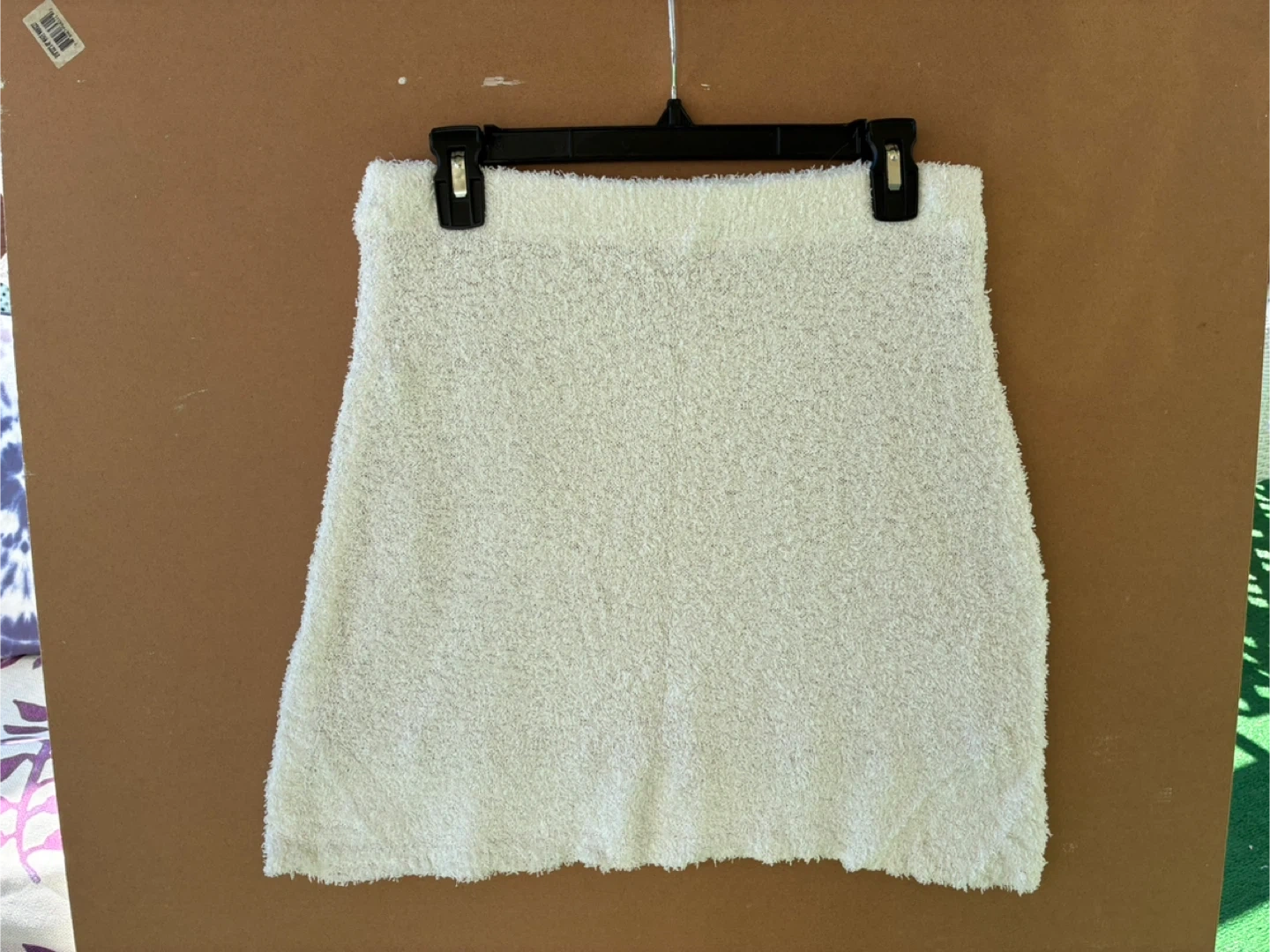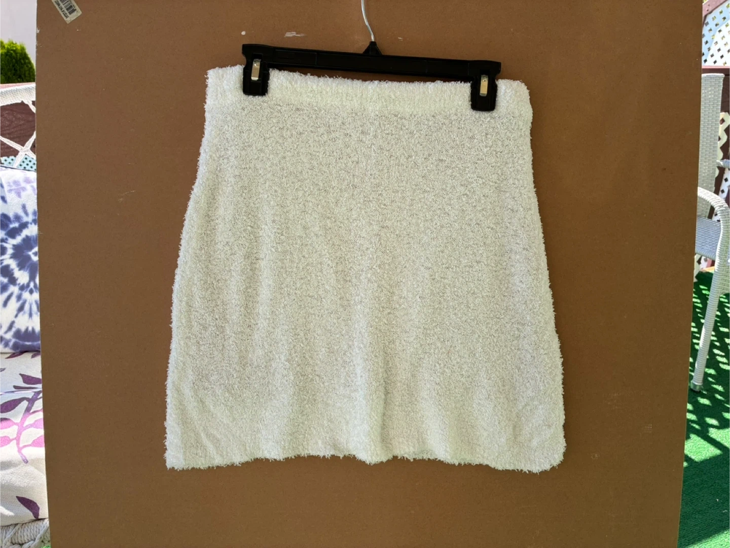 Selling a cute white boucle knit skirt! It's in great condition and ready for a new home. The material is soft and textured, perfect for adding a touch of cozy chic to your wardrobe. It is lined underneath for everyday use on any occasion.