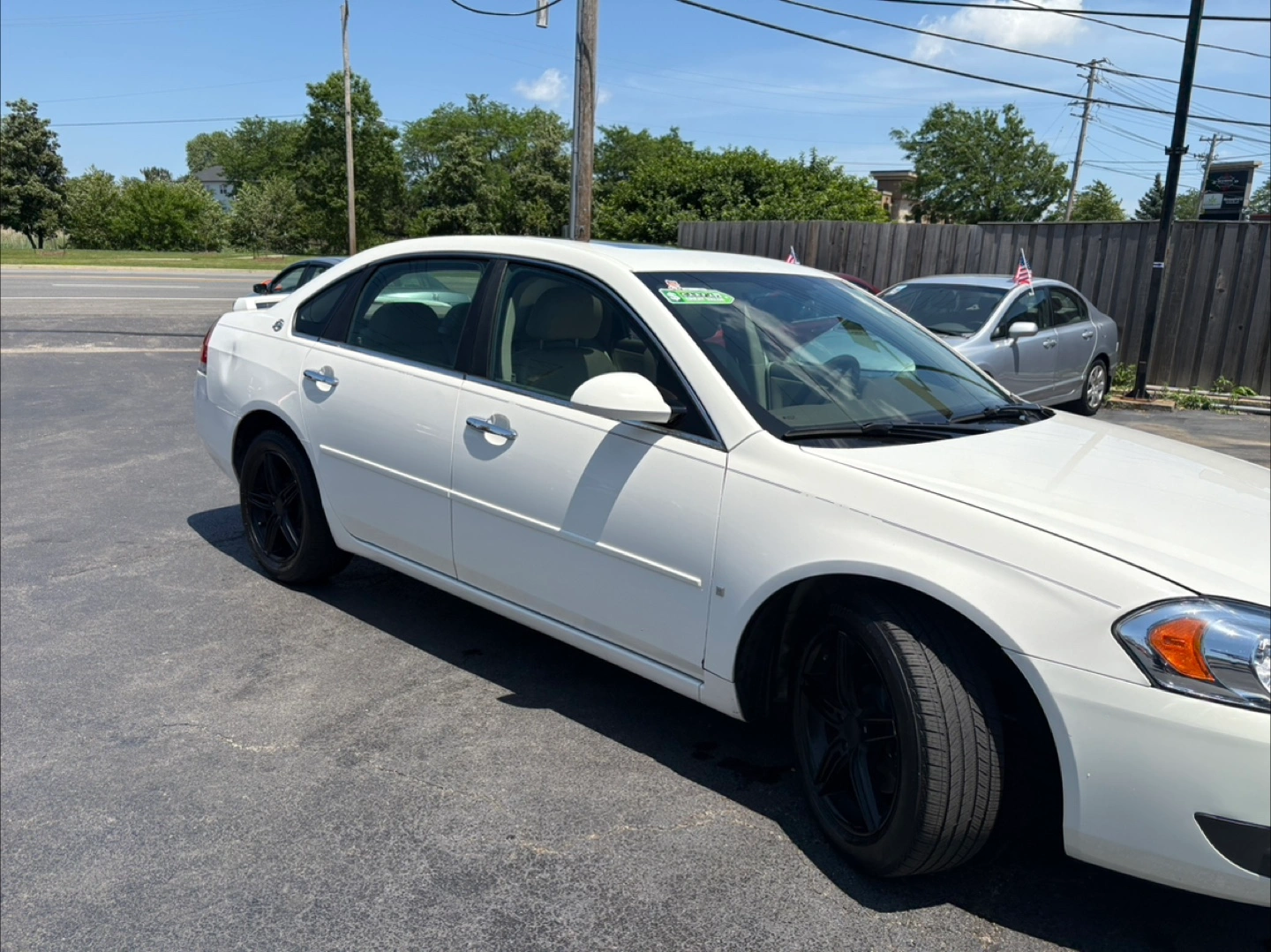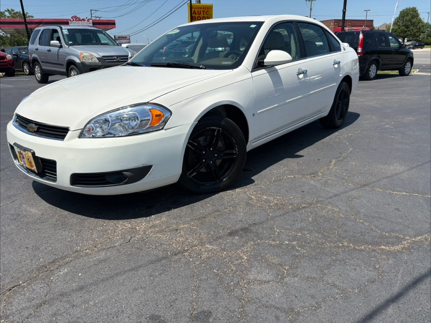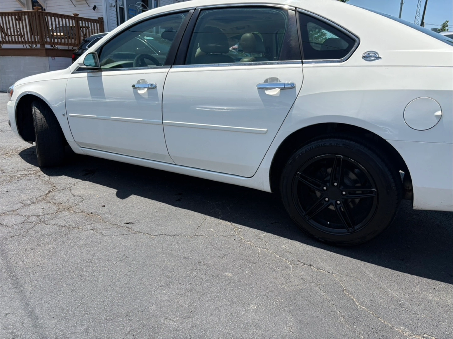 Selling a white Chevrolet Impala sedan. The interior is a light tan color. It has black rims. 07 132k