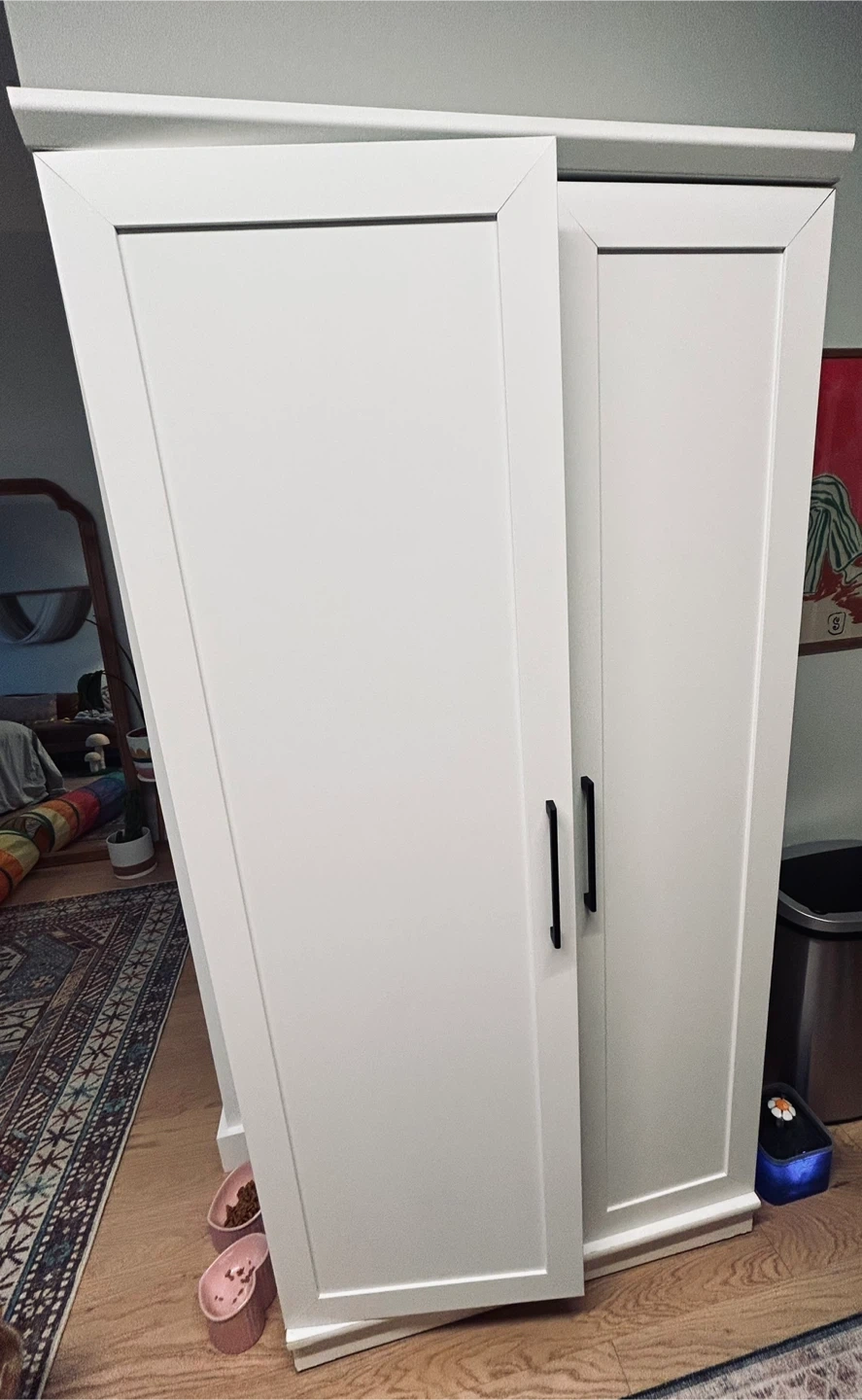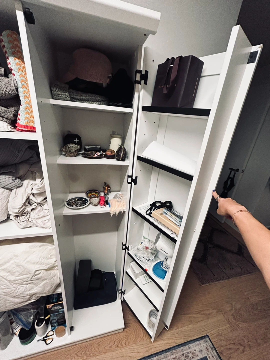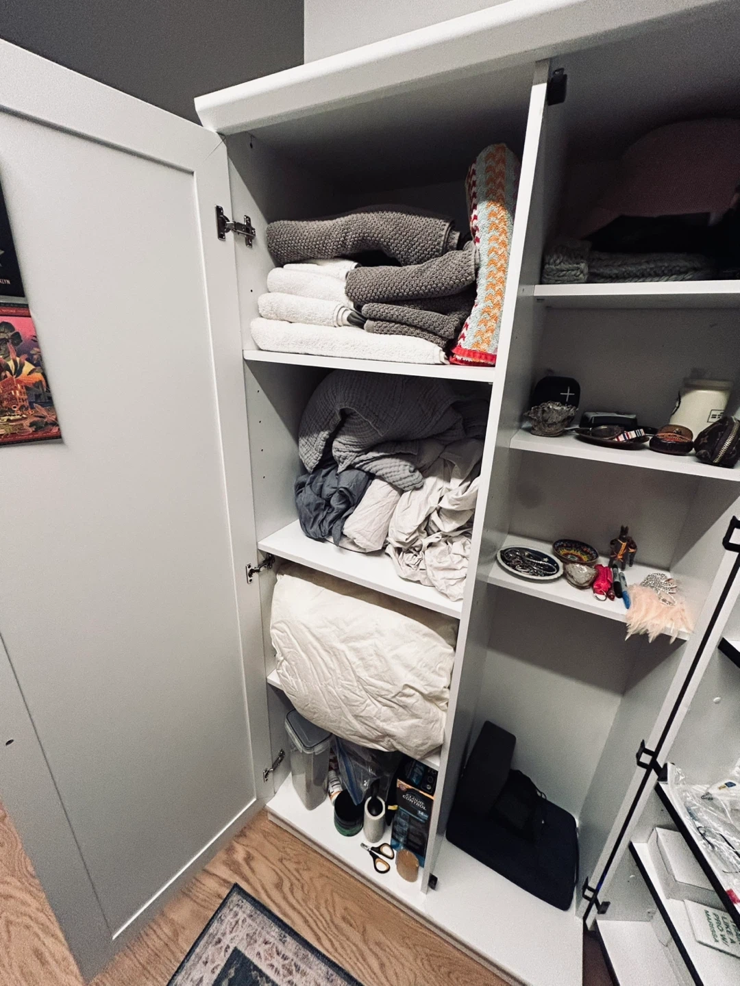 10Selling a white closet in great condition! It has plenty of storage space with shelves and doors to keep everything organized. 71 in tall 36 in across 16 in deep Shelves are adjustable
