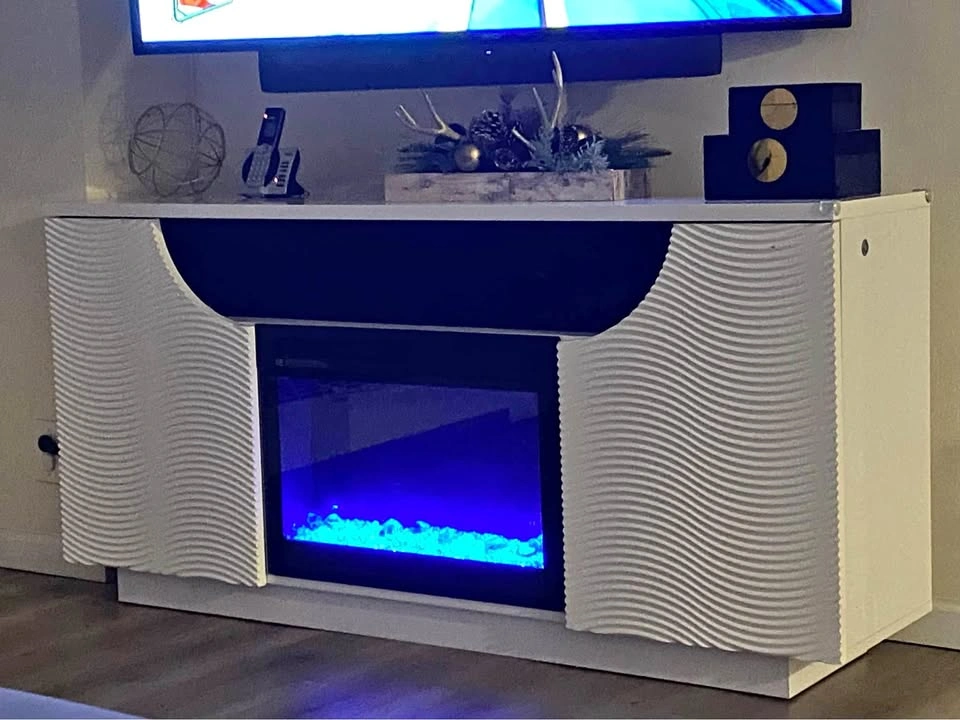 Modern electric fireplace - white. Lightly used. 65 inches wide - 32 inches height. (Original price $1,599) Now $650. For pickup only. Queens, NY.