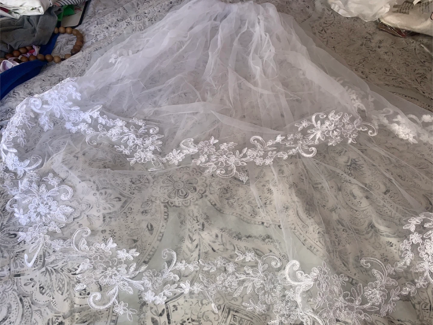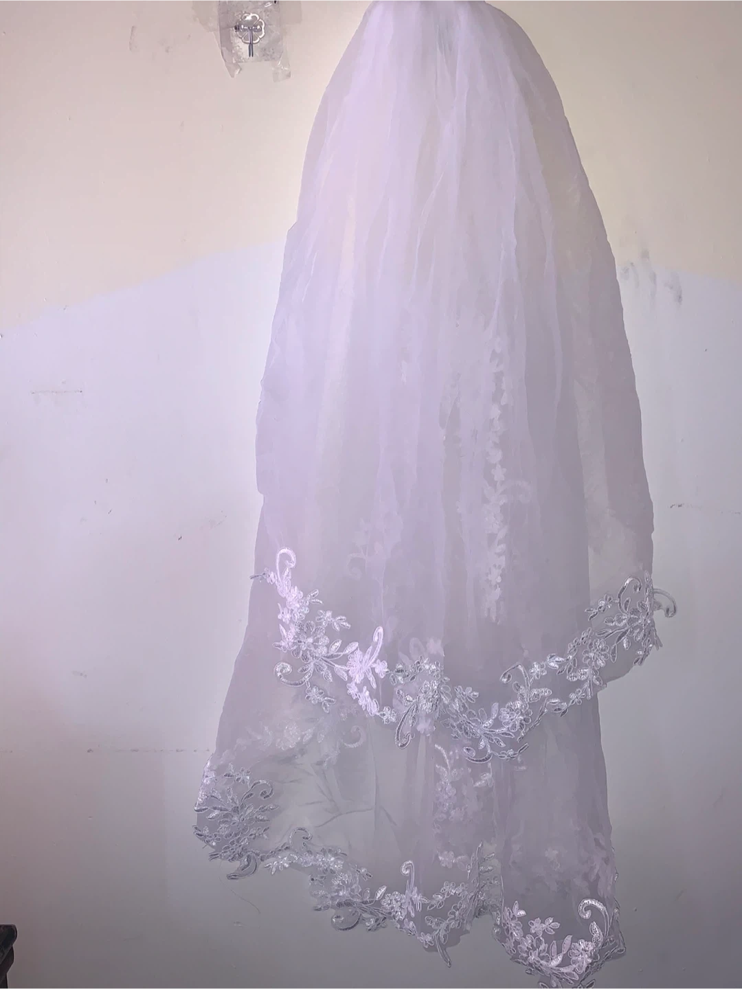 Selling a beautiful white lace wedding veil. It's in great condition and would be perfect for a beautiful wedding day. Brand new (never used).