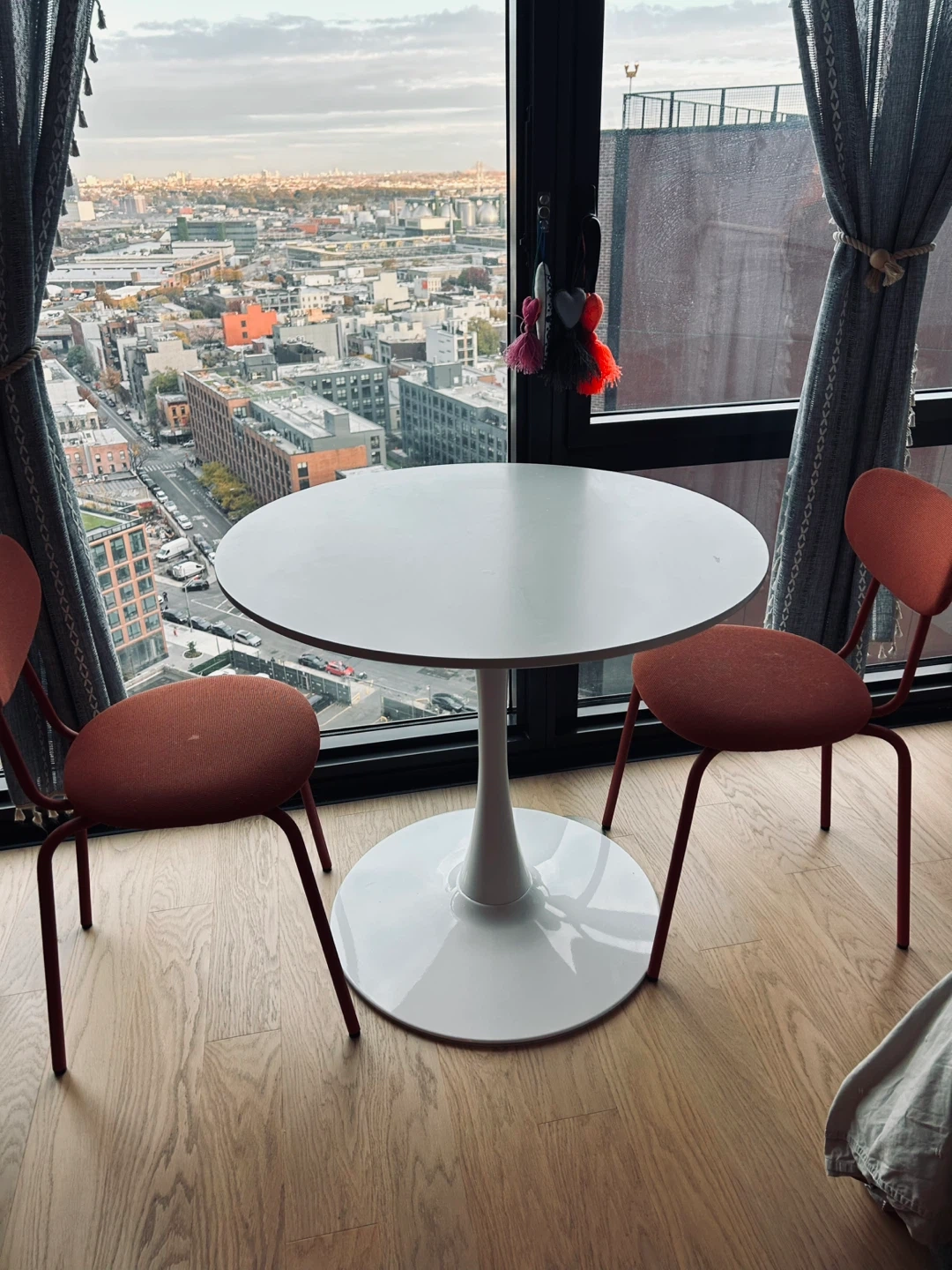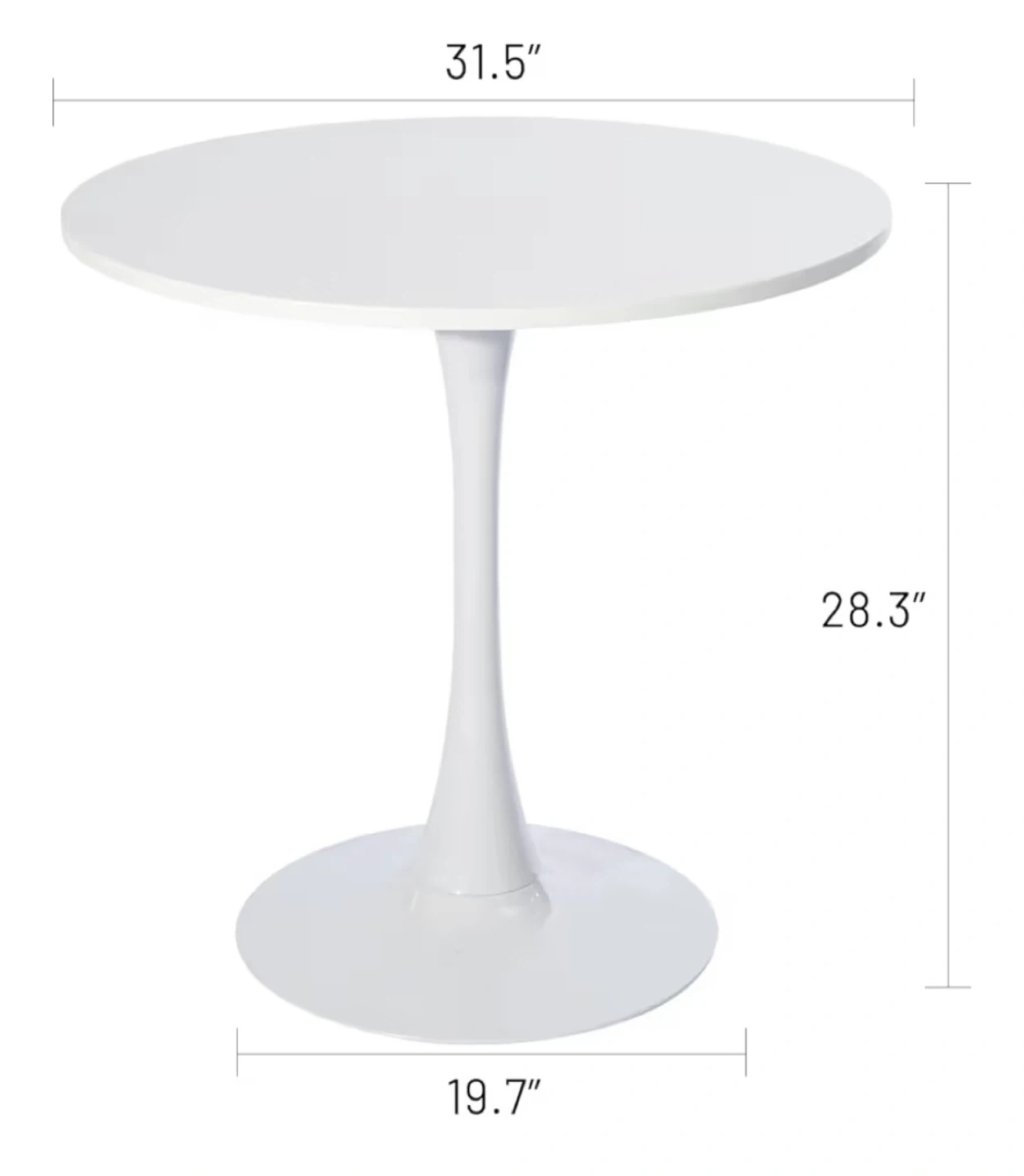 10I'm selling a stylish white round tulip dining table. It's in great condition and ready to brighten up your dining space! The table features a sleek, modern design with a round top and a pedestal base. Key Specifications: - Size: 31.5 inches diameter - Height: 28.3 inches - Base Diameter: 19.7 inches Make an offer- chairs sold separately $30 for the set