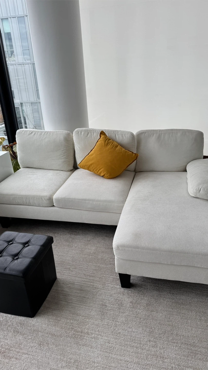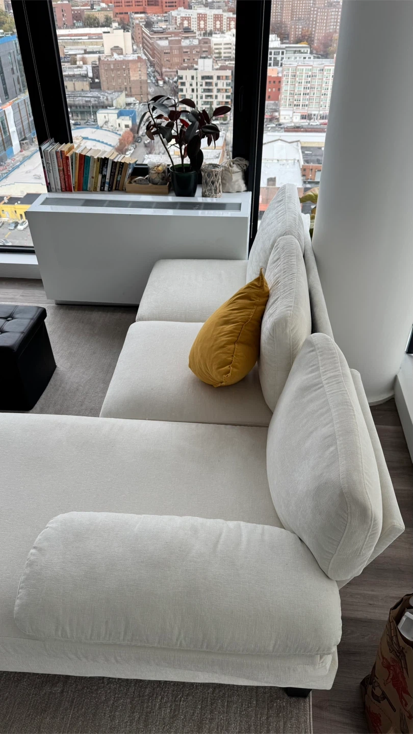 10Selling a comfortable white sectional sofa with a chaise lounge! It's in great condition and would be perfect for a living room or den. The chaise lounge can be positioned on either side of the sofa. Feel free to reach out if you have any questions!