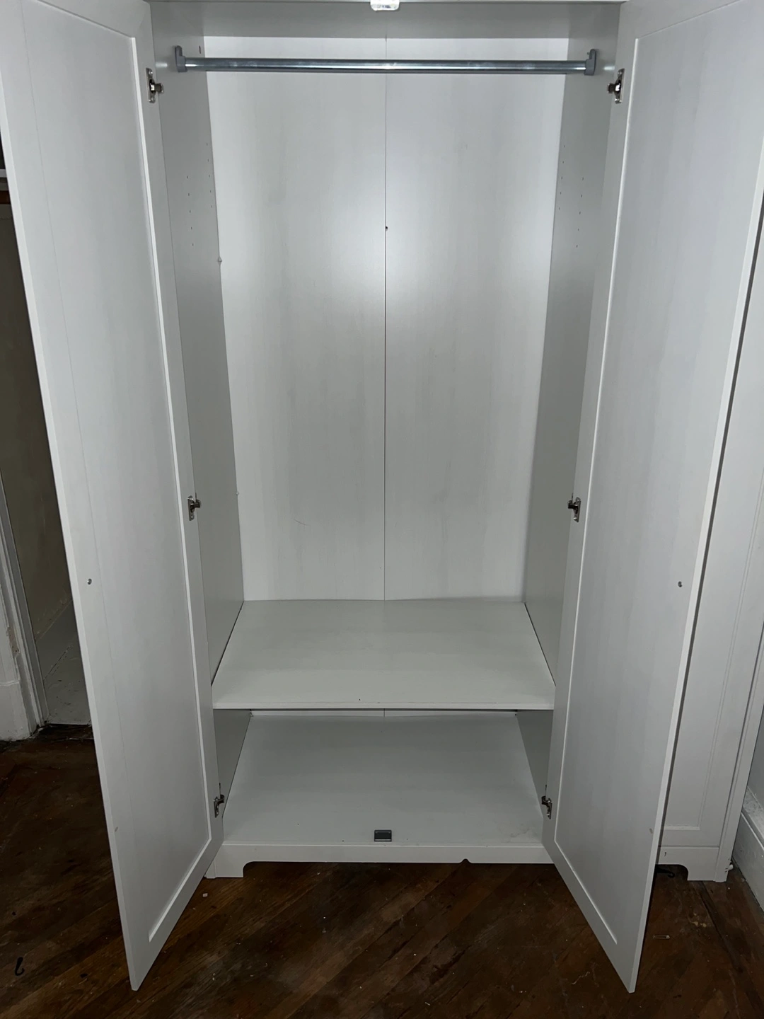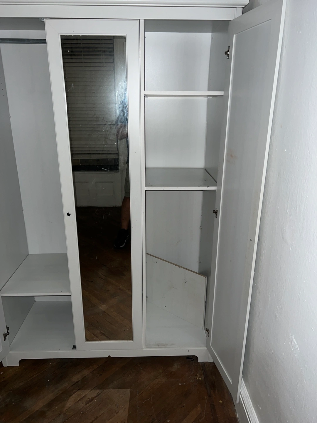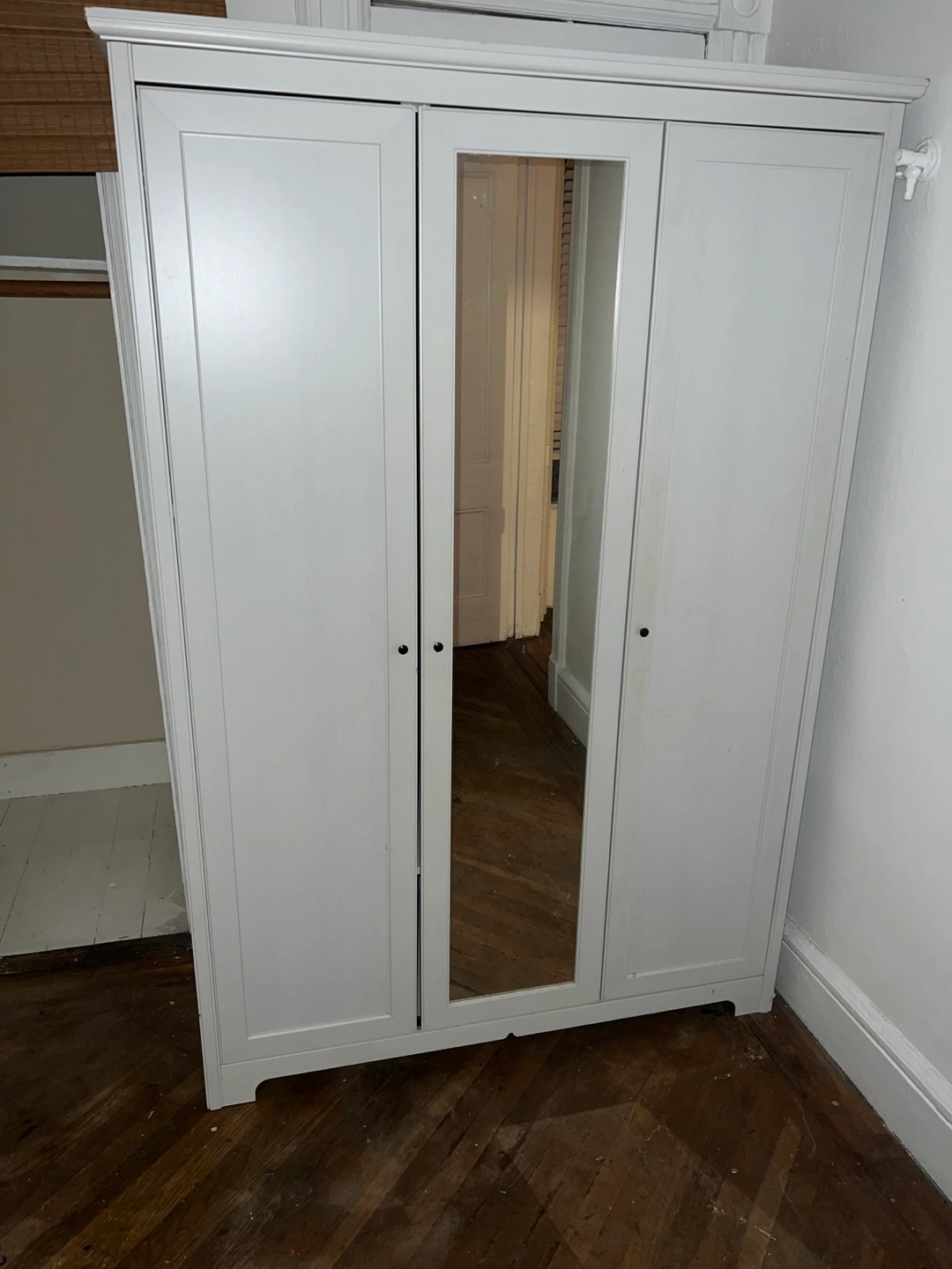 64Selling a white wardrobe closet. It's in good condition and has a mirror on one of the doors. Perfect for extra storage! Dimensions: 75x 51 x20 1/4