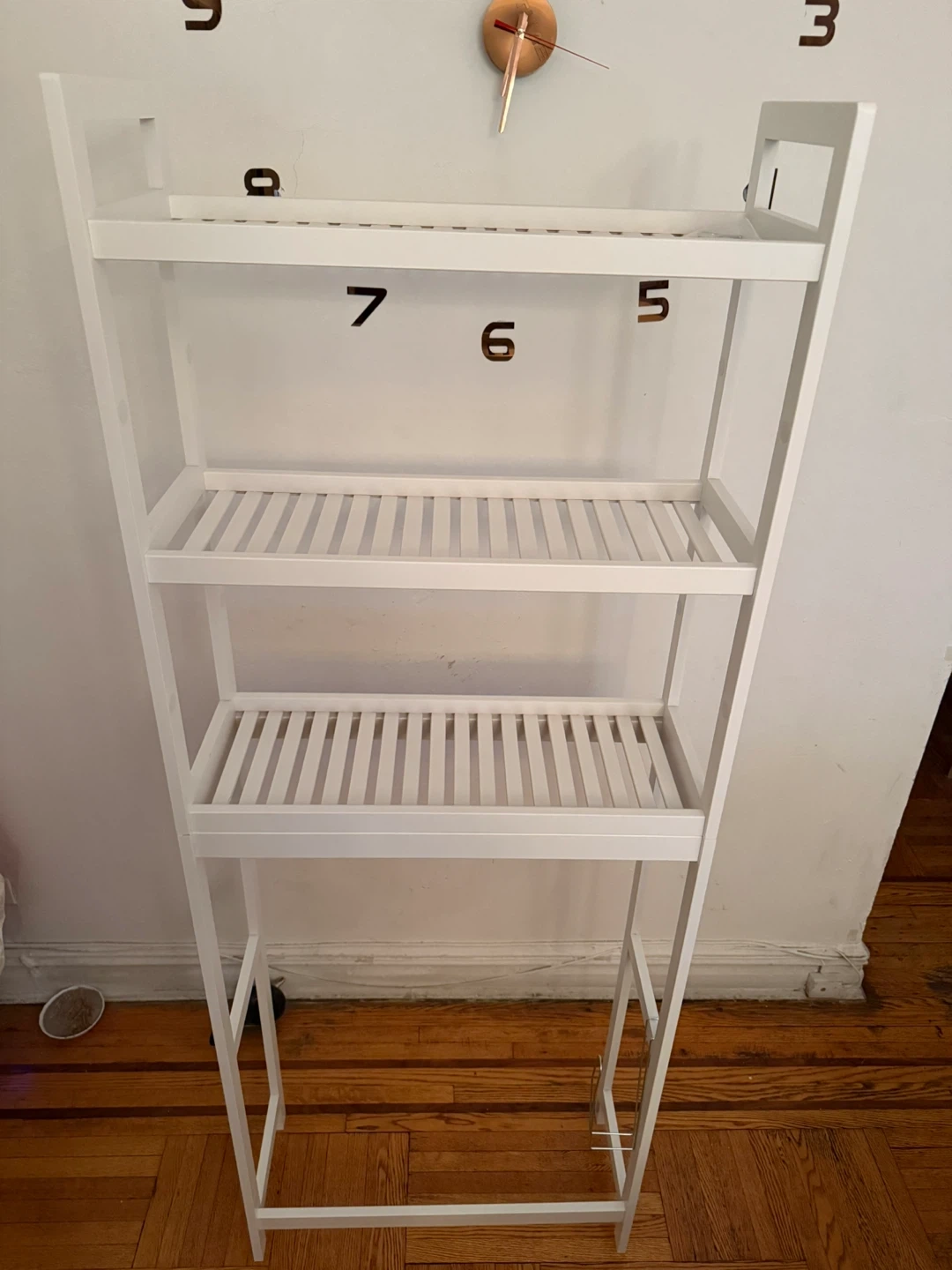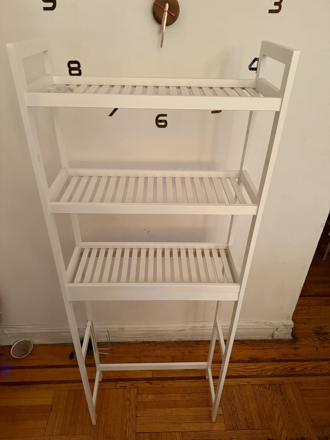 Selling a white wooden shelf in good condition! It's perfect for adding some extra storage space to any room. It's sturdy and has a clean, simple design that will fit in with any decor