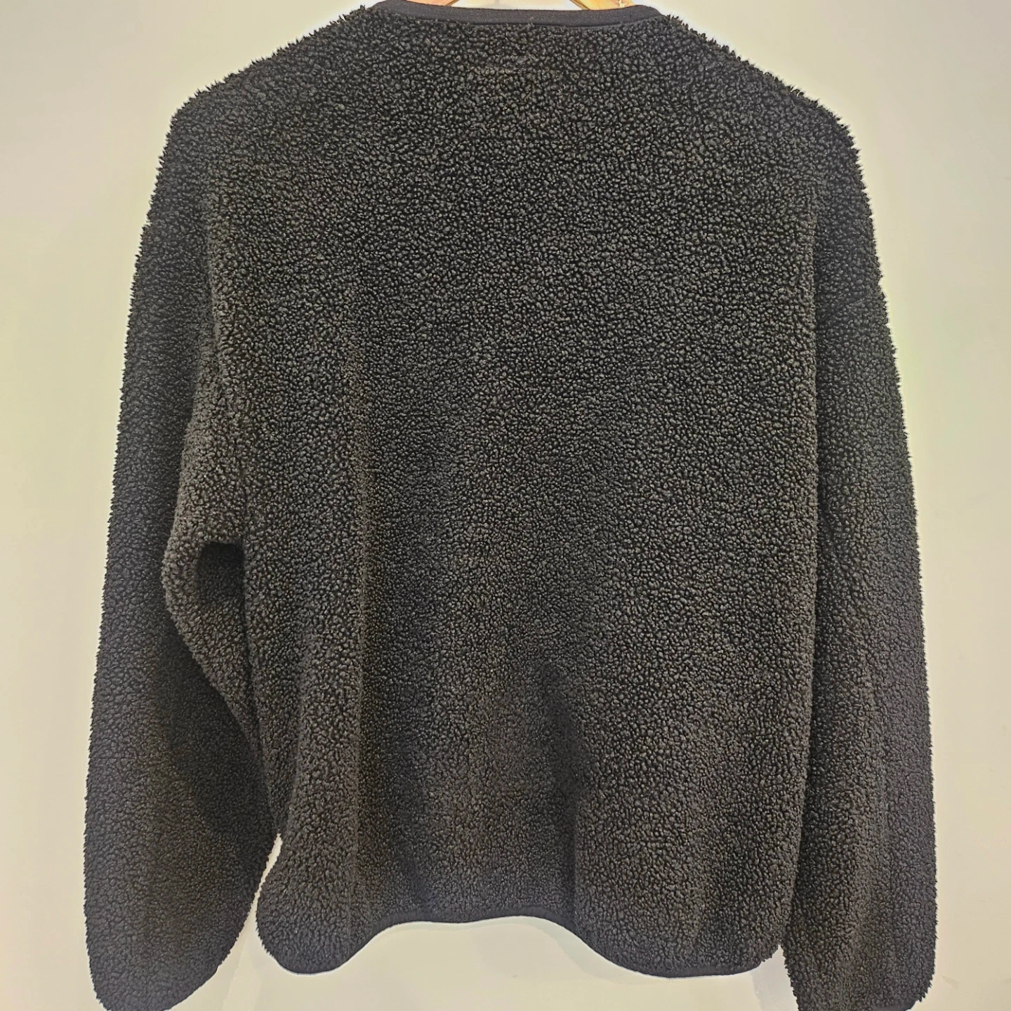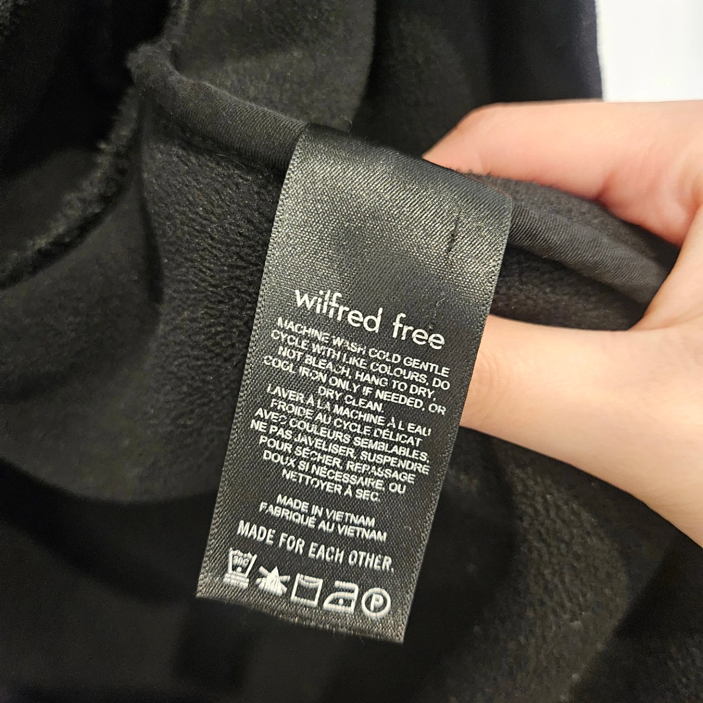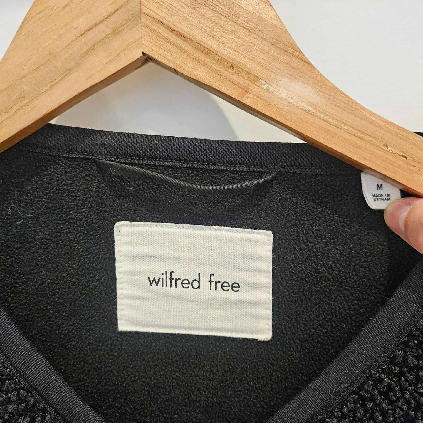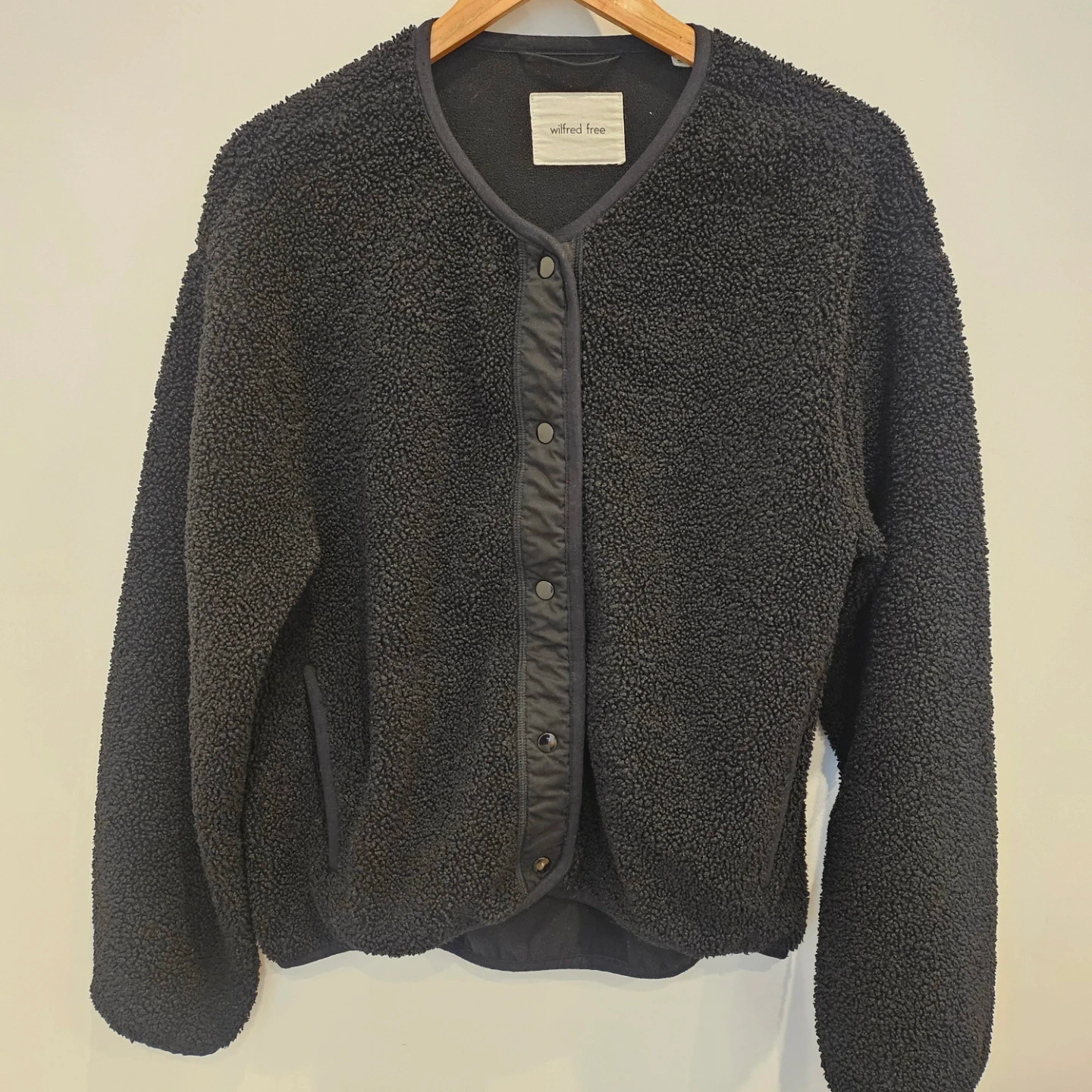 5Selling a Wilfred Free fleece jacket in black, size medium. It's a cozy piece that's perfect for layering! The material is soft and comfy, and it features a button-up front. It's in great condition.