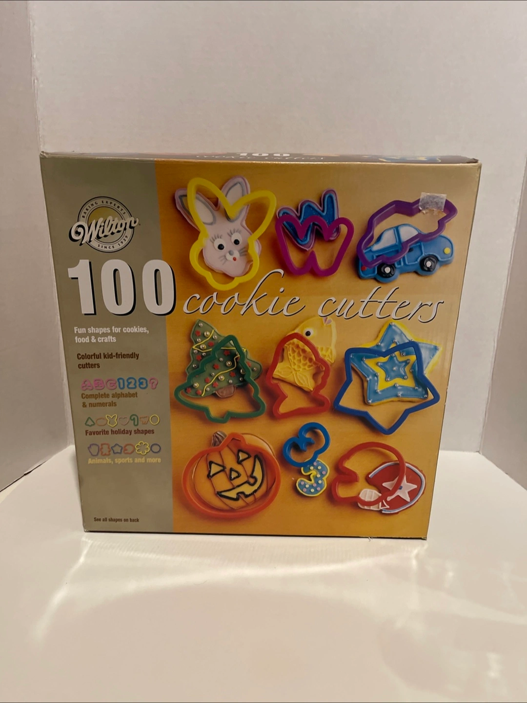 55Never used. I'm selling a Wilton cookie cutter set that includes 100 pieces! It has fun shapes for cookies, food, and crafts. There are colorful, kid-friendly cutters with a complete alphabet and numerals. There are also favorite holiday shapes, animals, sports, and more! Pick up in Bridgeport 60609
