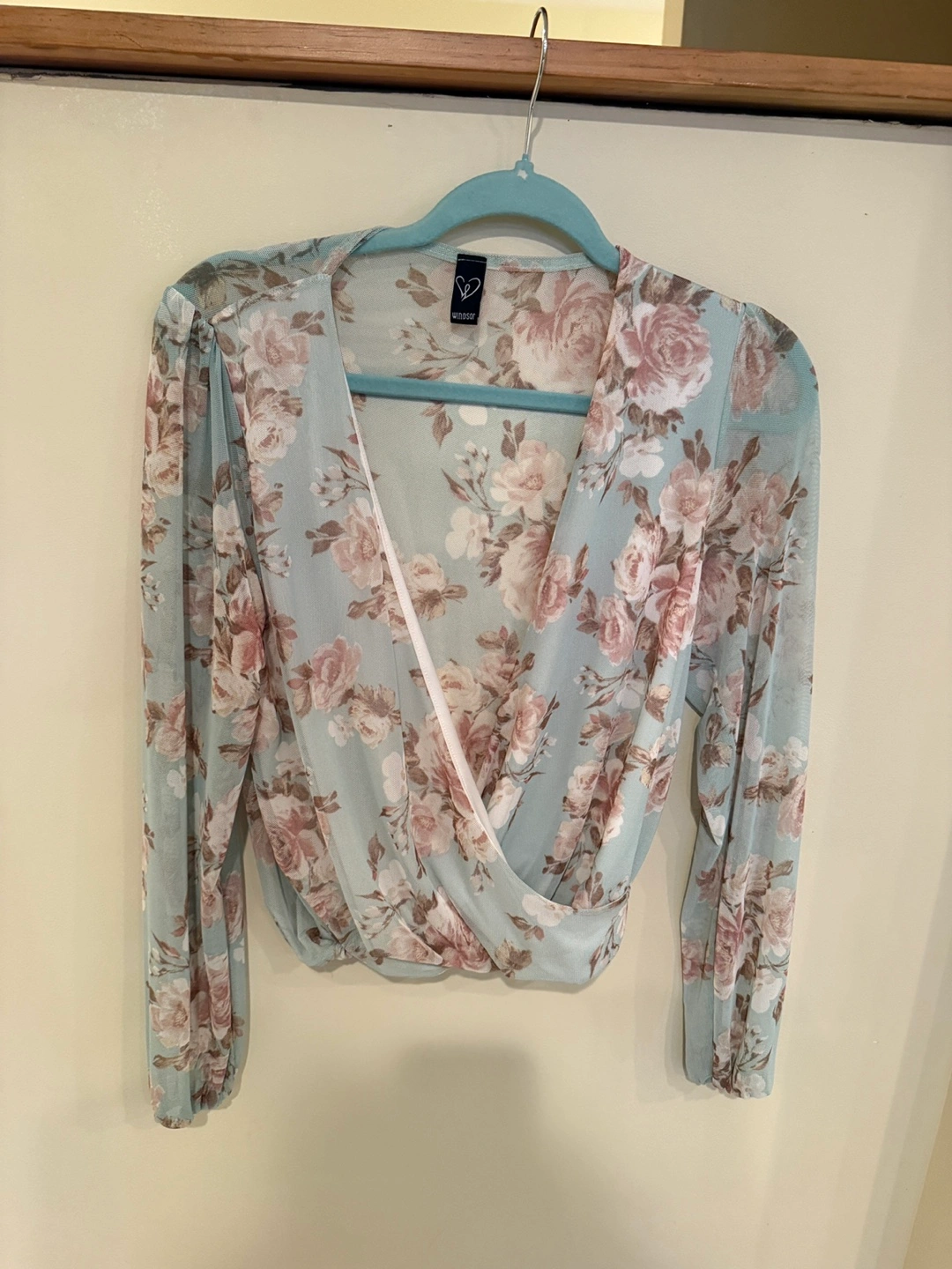 This is a Windsor long sleeve top with a beautiful floral print. It features a flattering wrap style and is perfect for dressing up or down. The material is lightweight and comfortable, making it great for any occasion