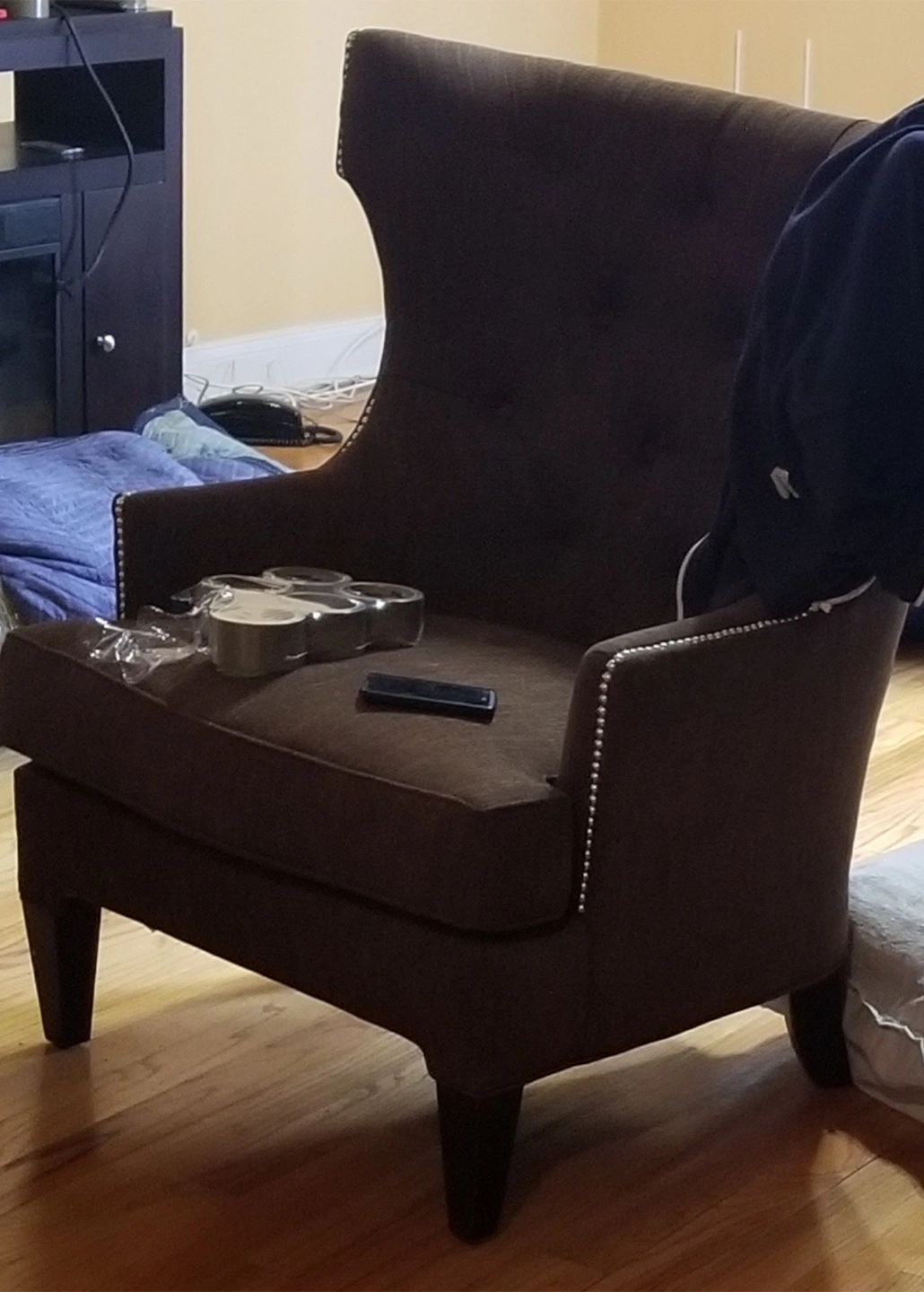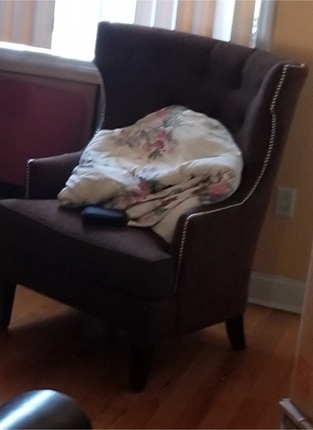 CB2 Gray Velvet Chair with Gold Metal Frame