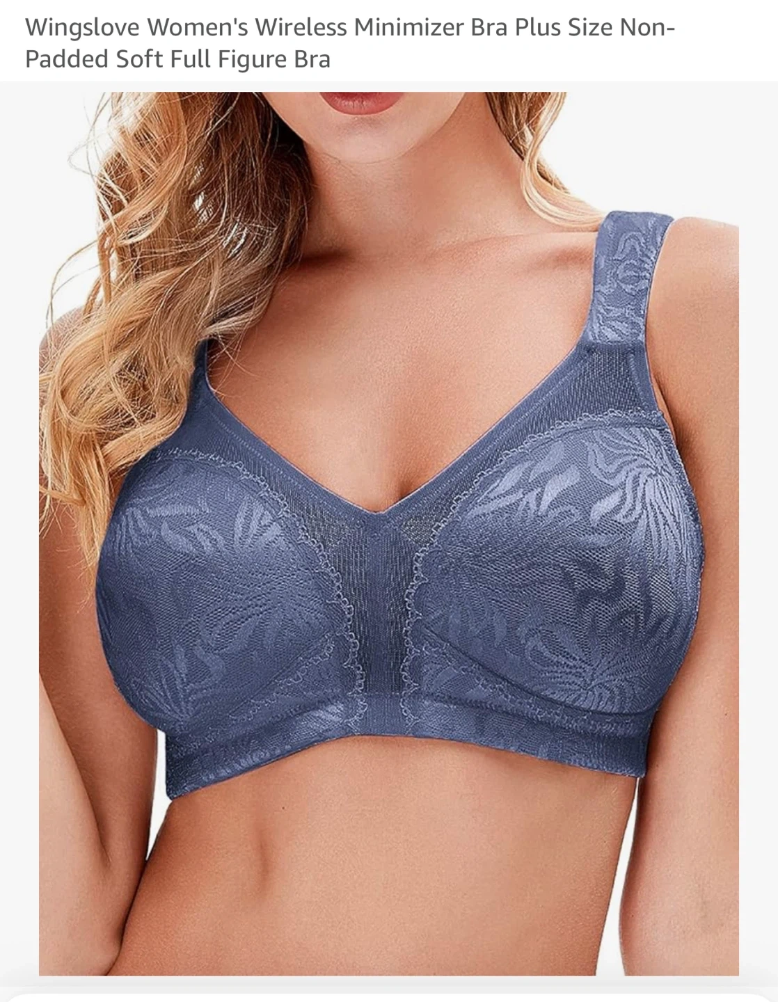 Here's a Wingslove wireless minimizer bra in a plus size. It's a non-padded, soft, full-figure bra. Great for everyday comfort and support!