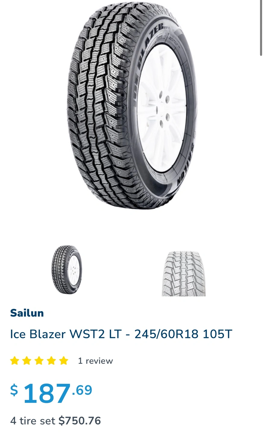 Sailun Ice Blazer 245/60R18 105T winter tires with rims. 5x114.3 bolt Take off from FORD EXPLORER. Used for 3 winter seasons but barely used. It probably has 2-3000km on it. CHECK PHOTO FOR TREAD WEAR! Pickup and cash only at Sentinel and Finch