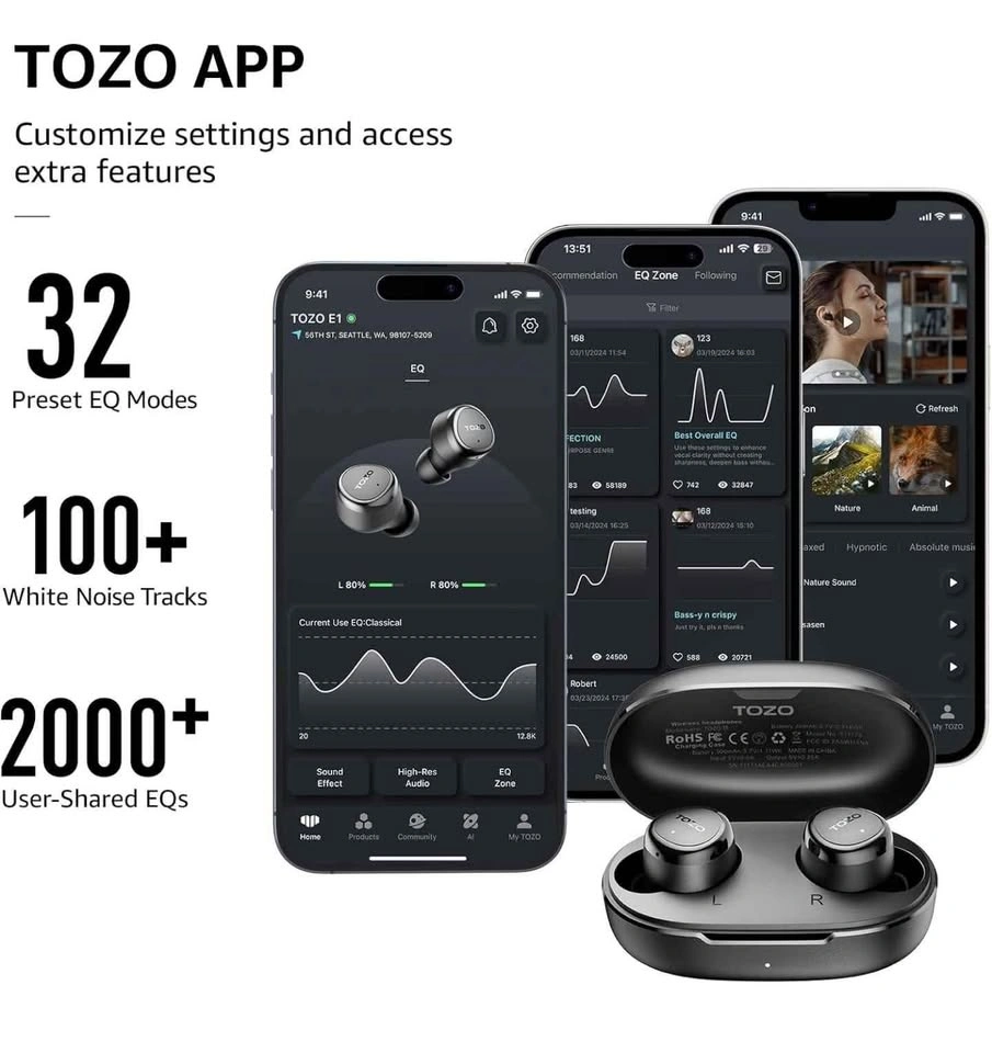 Wireless Earbuds Build in Mic Clear Calls Ergonomic Light Weight Bluetooth 5.3 in Ear Headphones IPX6 Waterproof Premium Stereo Sound Ear Buds 30H Playtime with 32 EQs via APP, Black