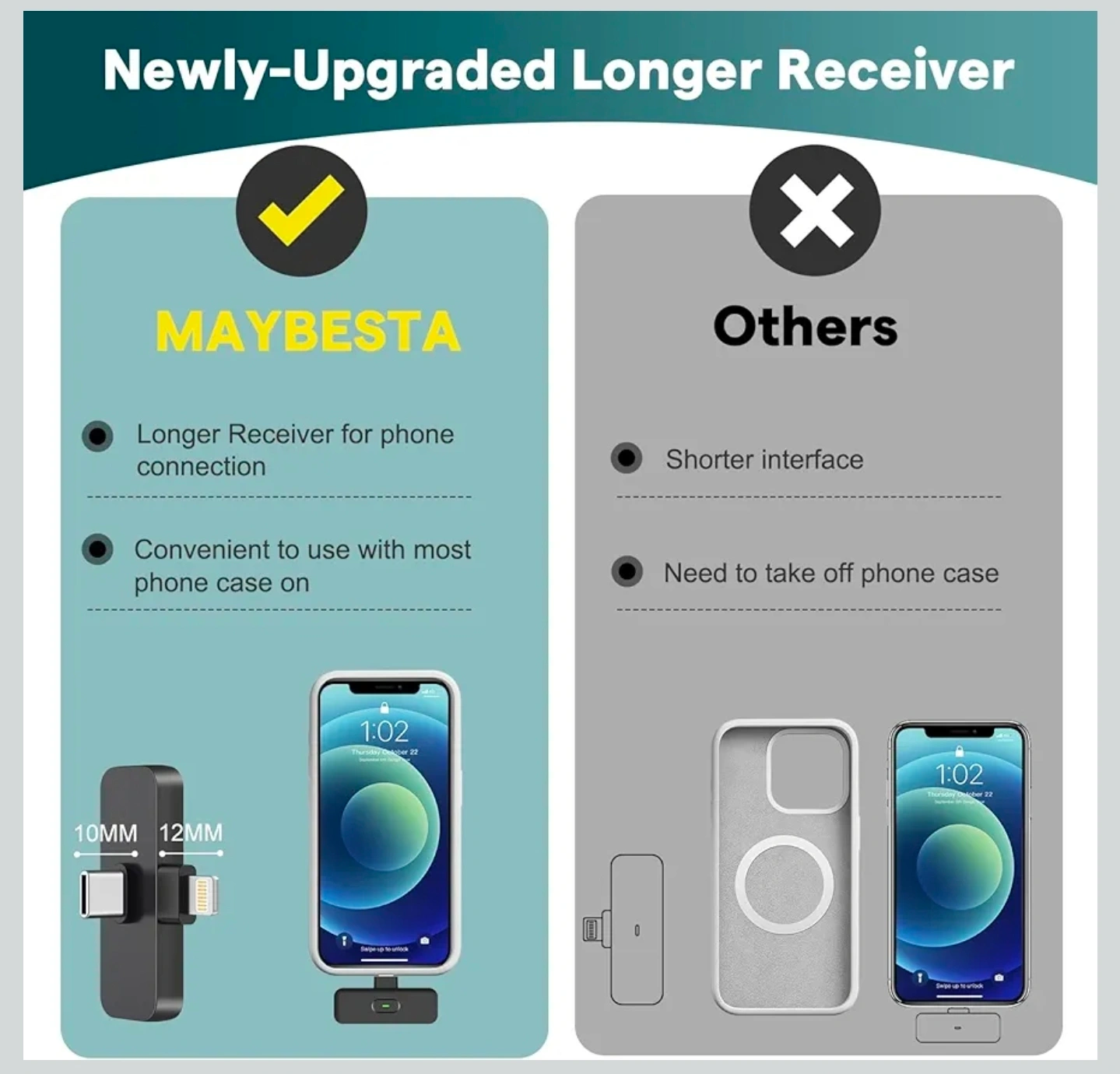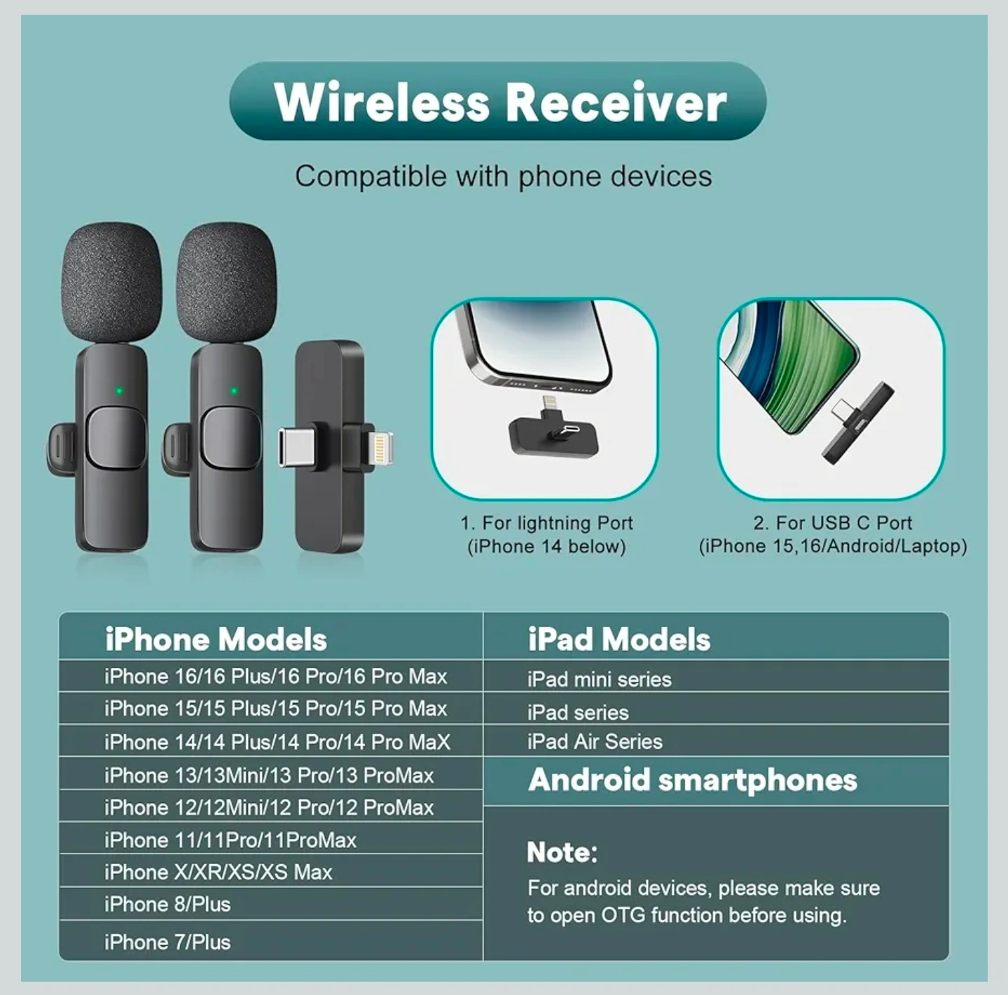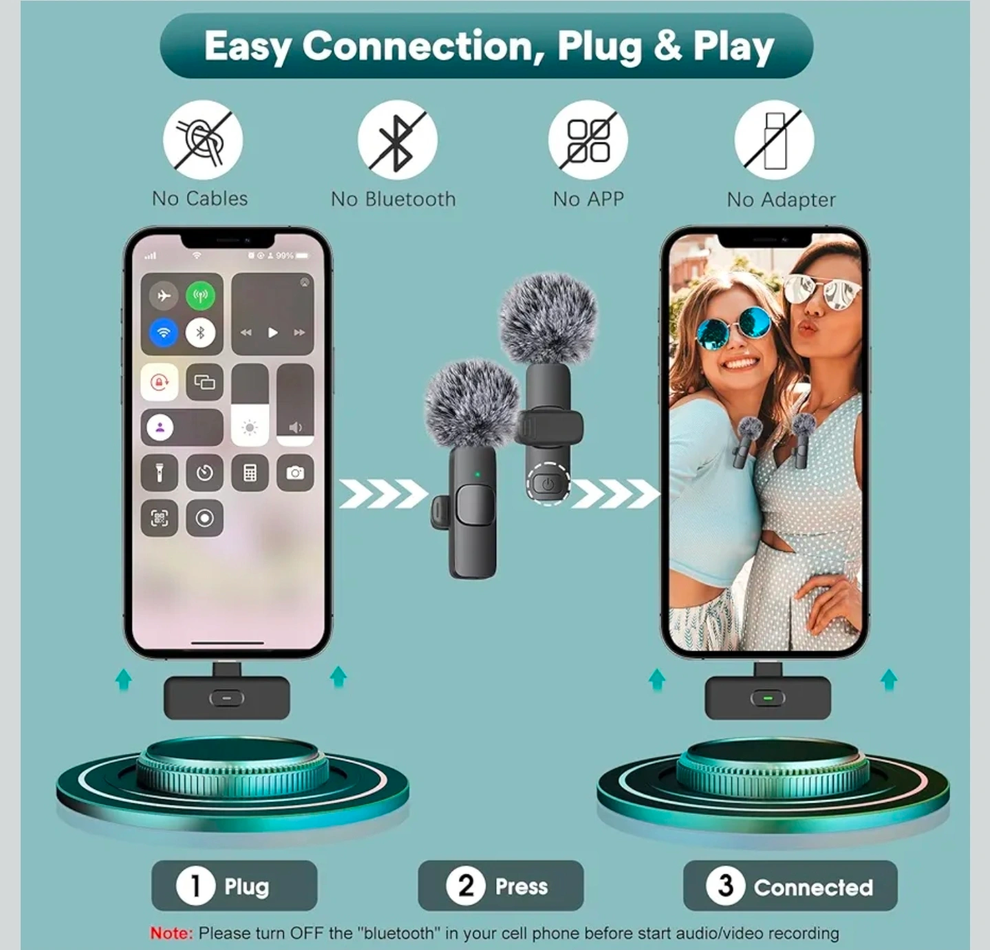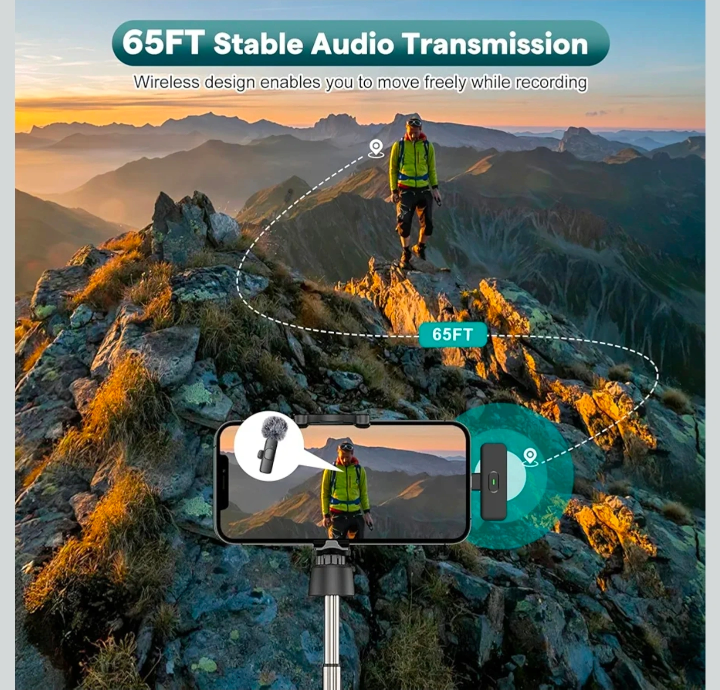 22Wireless Mini Microphone for iPhone, Android Phone - Bluetooth Lavalier Lapel Mic for Audio Video Recording - Clip on Content Creator Microphones for YouTube Tiktok Podcast Vlogging