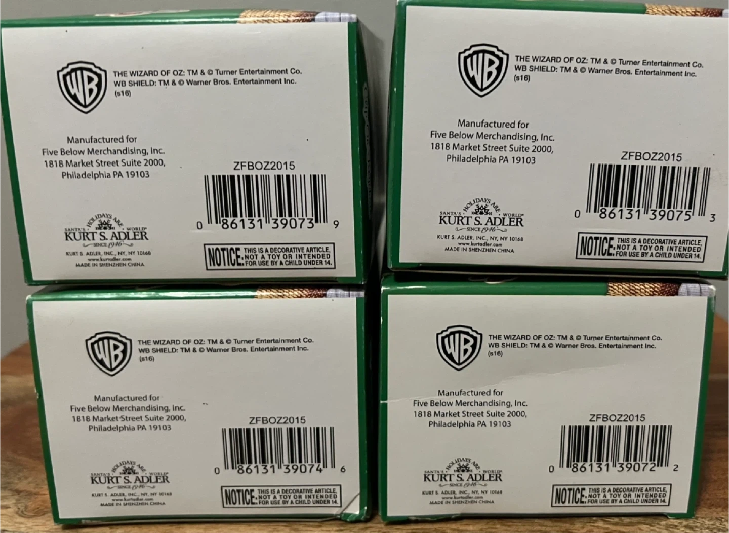 10Selling a set of Wizard of Oz clip-on keychains by Kurt S. Adler! These are decorative and would be a great addition to any collection. The set includes the Tin Man, Lion, Dorothy, Scarecrow, and the Wicked Witch of the West. Each keychain comes in its original box.