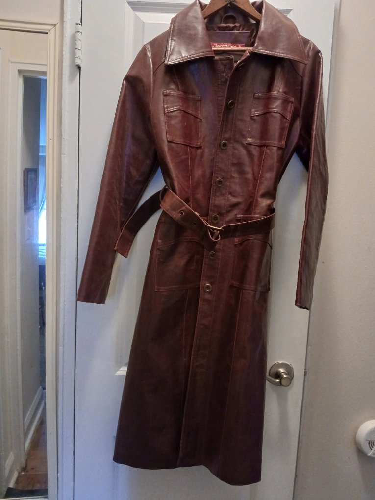 Burgundy FAUX LEATHER MAXI COAT ( VINTAGE)