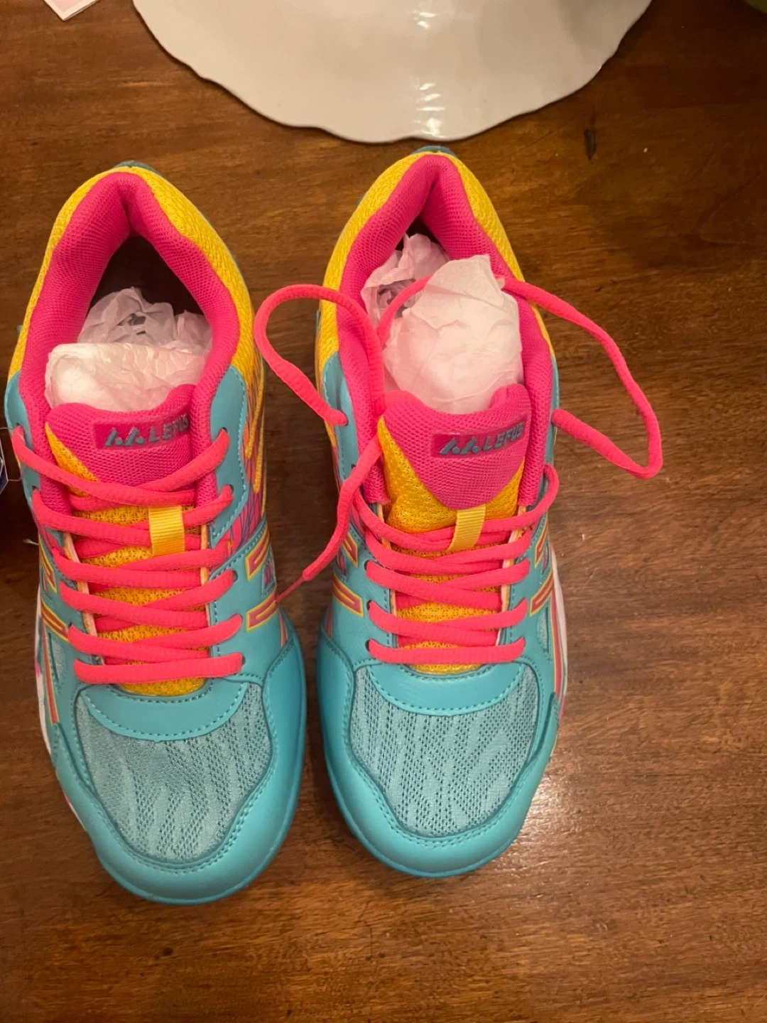 LEFUS athletic shoes in a fun teal, pink, and yellow colourway. It's an size 8 with a mesh and synthetic upper. These shoes are ready for playtime! Brand new never been worn! Bought at $69.00.