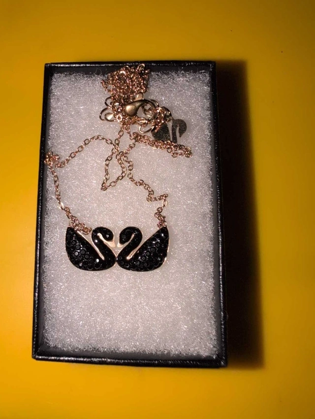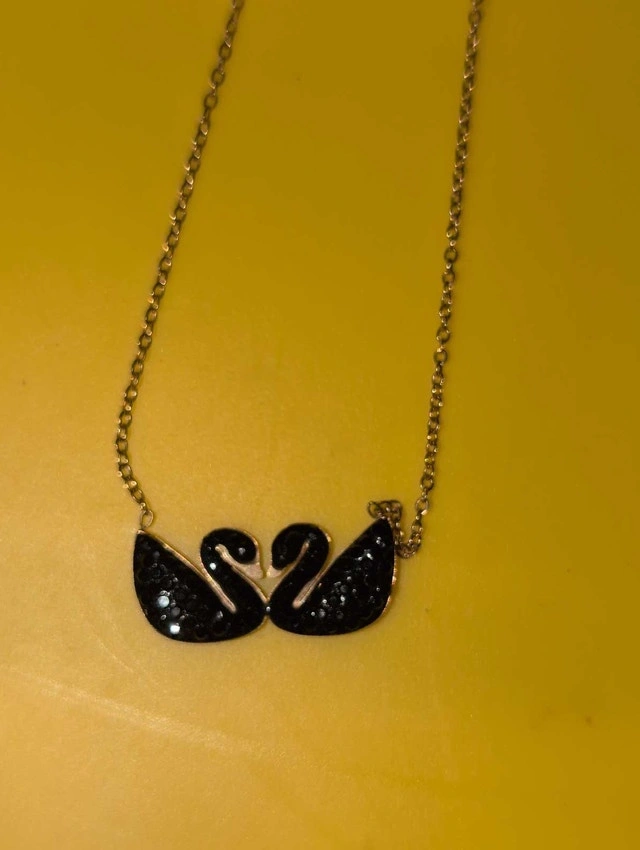This elegant necklace features two black swans on a chain, perfect for adding a touch of sophistication to any outfit. It's in great condition and ready to find a new home. Let me know if you're interested!