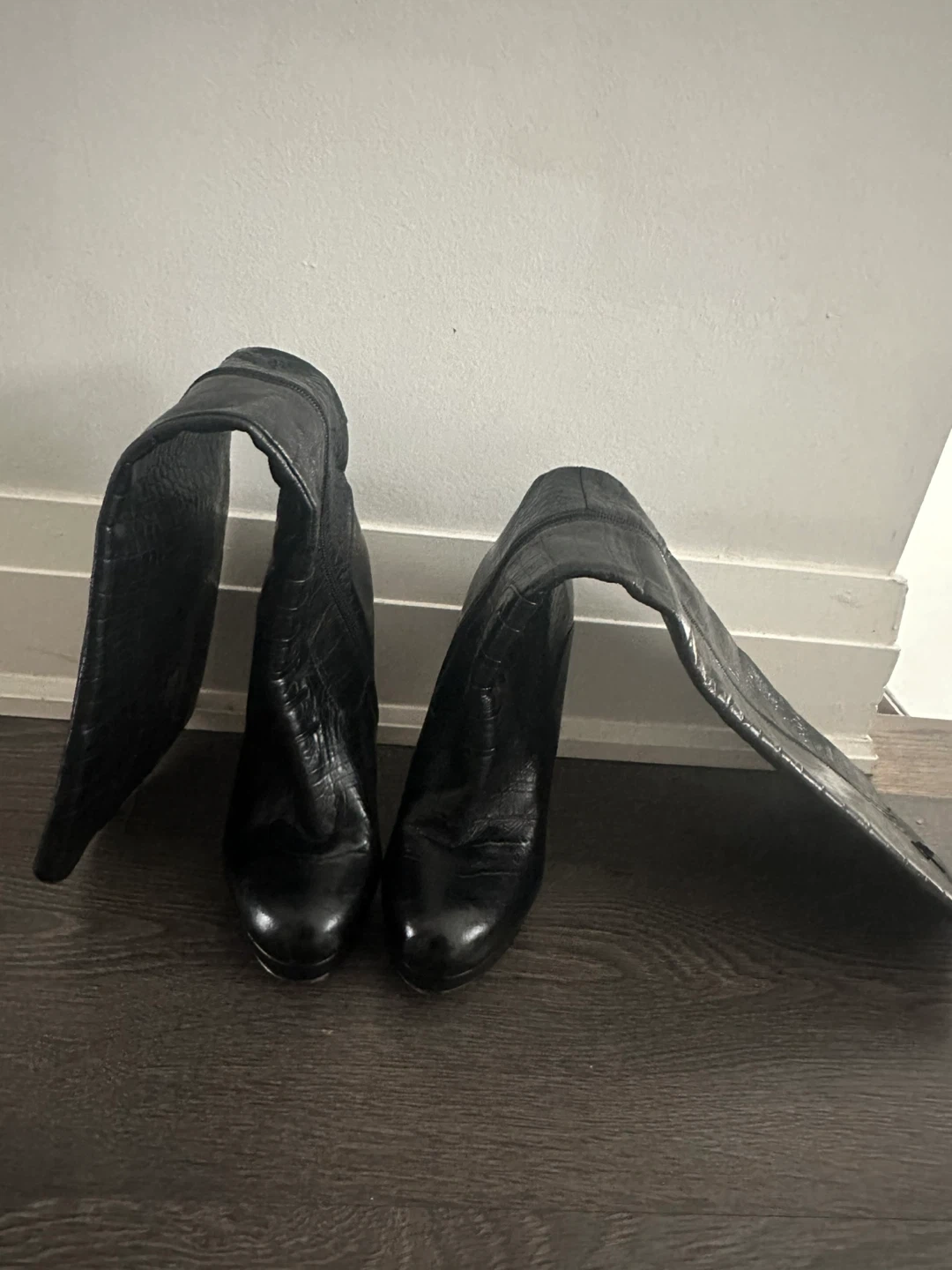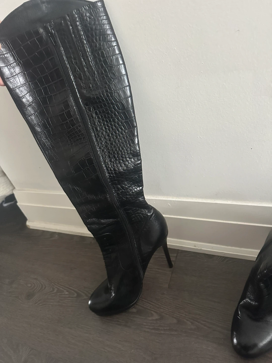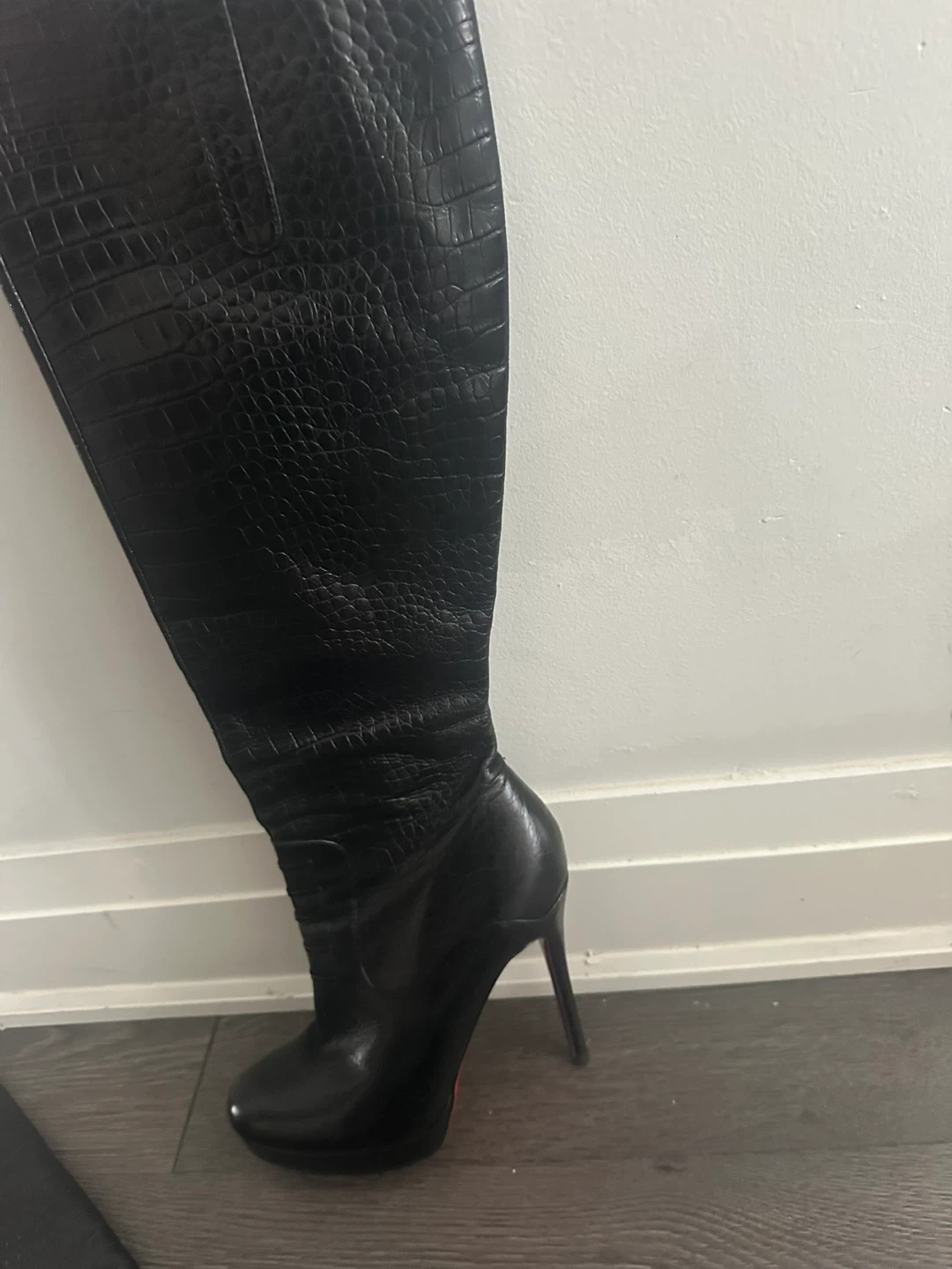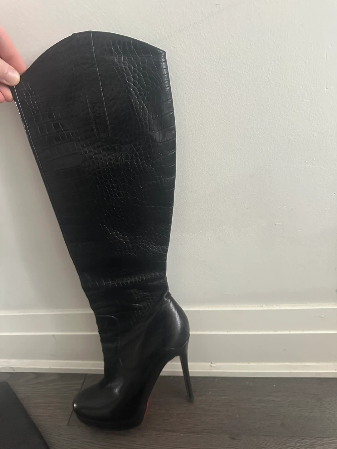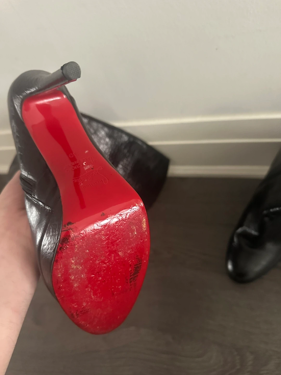 Christian Louboutin Black Leather Knee-High Stiletto Boots