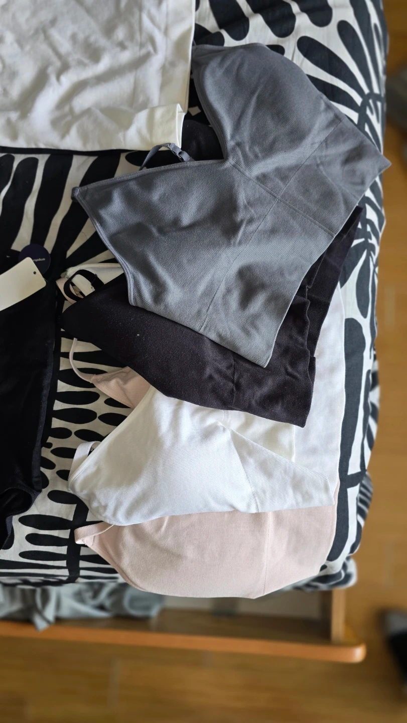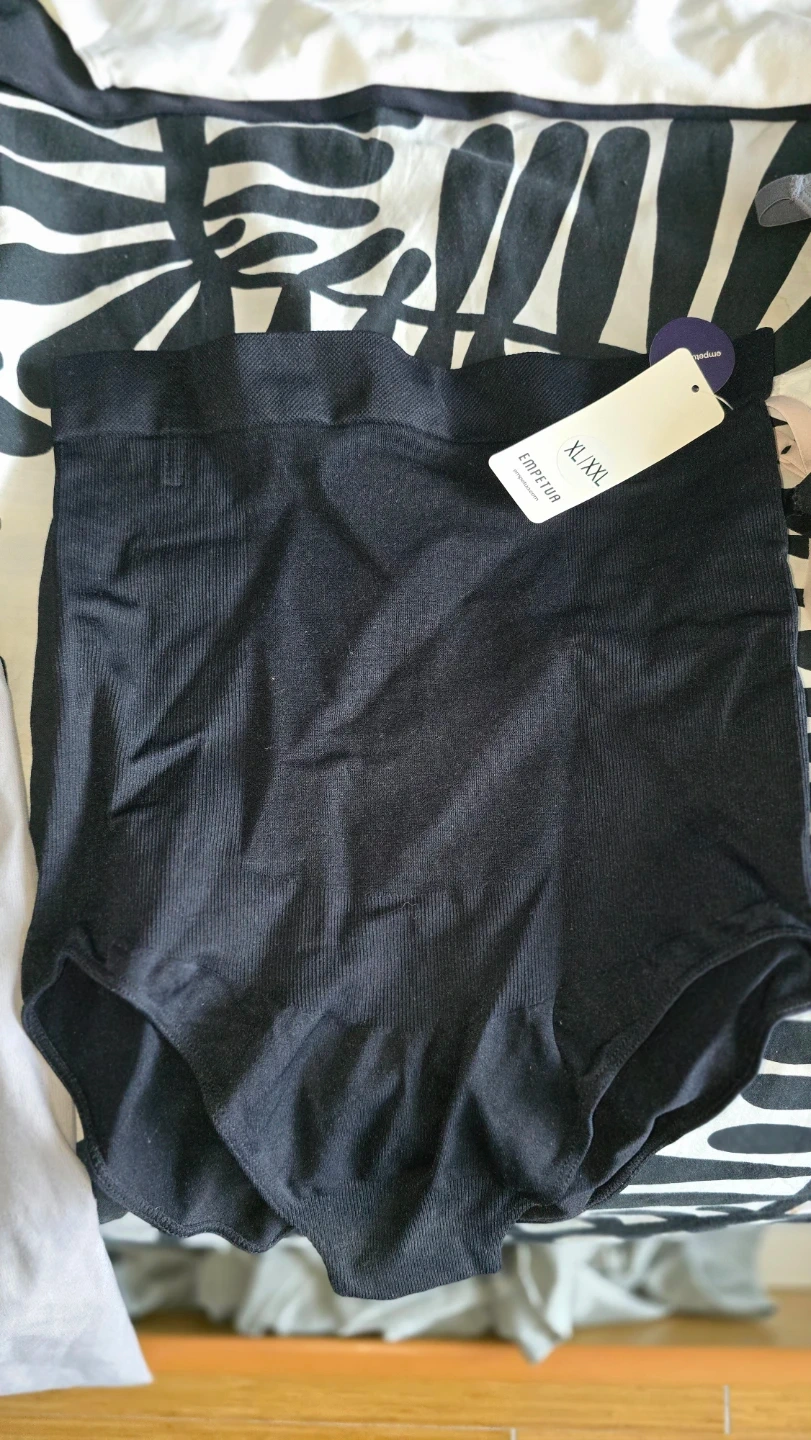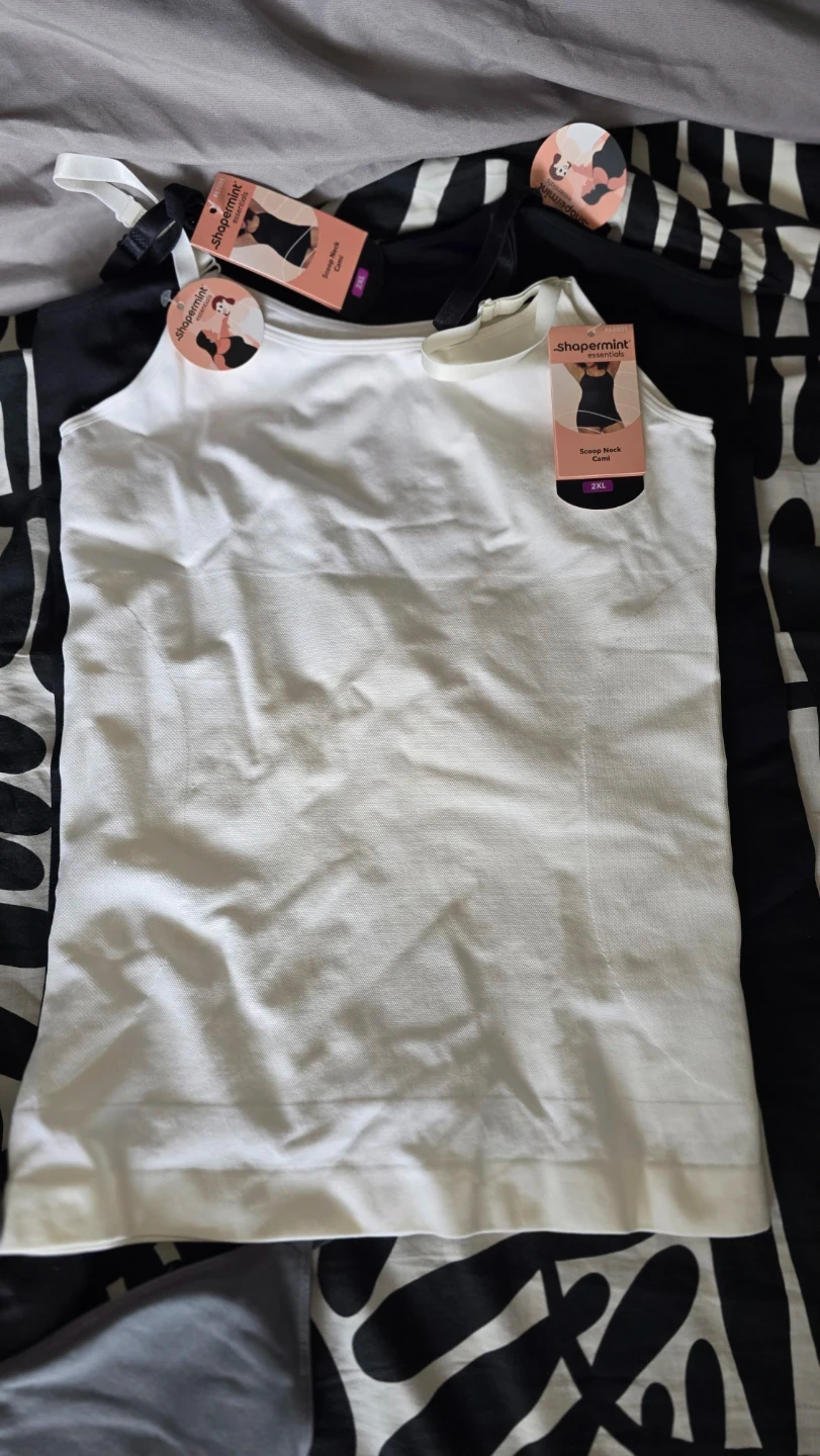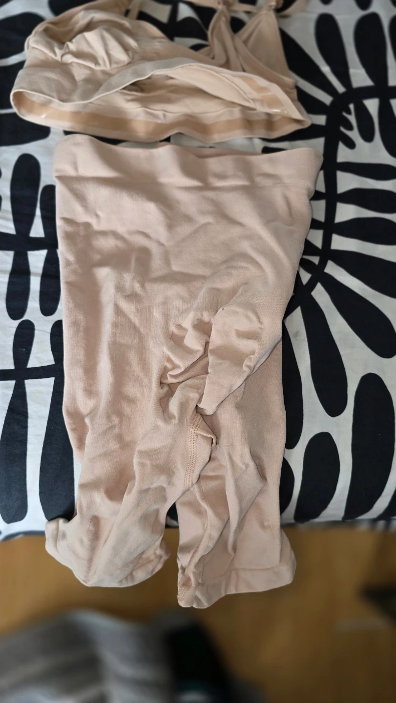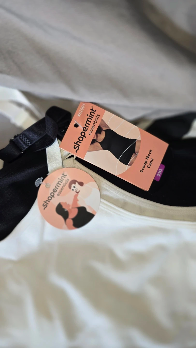 Set includes a Shapermint Essentials Scoop Neck Cami and high-waisted briefs. Both items are crafted from a soft, ribbed blend. Available in black, grey, and blush pink. Size XL/XXL. Also 1 Skims bottom and bralette. Each is $20.00