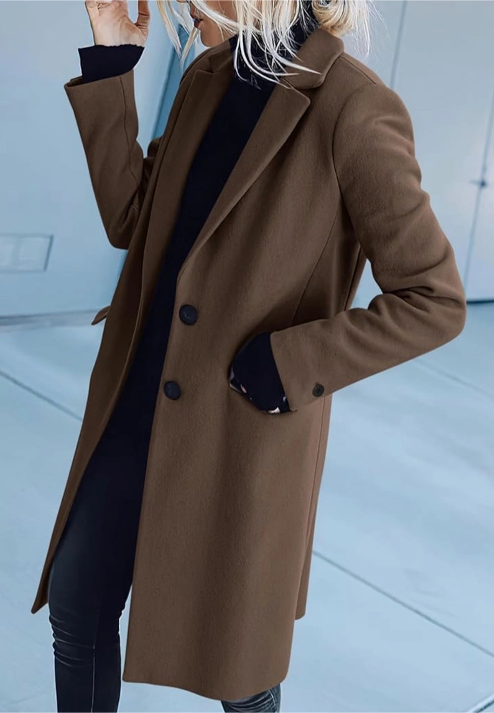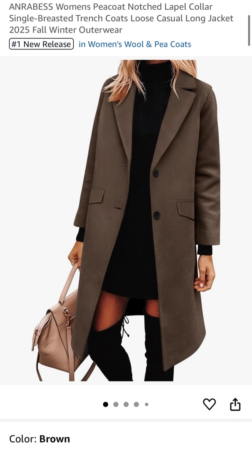 ANRABESS women's trench coat in brown, size medium. This peacoat features a notched lapel collar and a single-breasted design. It's a loose, casual long jacket perfect for fall and winter outerwear! Fit Type - Loose Fit.Please refer to the detailed size chart to find your fit.The women's loose fit peacoat can wear with jeans, dress, sweaters for a trendy look in spring, fall or winter. Size - S=US(4-6), M=US(8-10), L=US(12-14), XL=US(16-18), XXL=US(20-22). More details in rich description for our long sleeve notch lapel single-breasted trench coat.