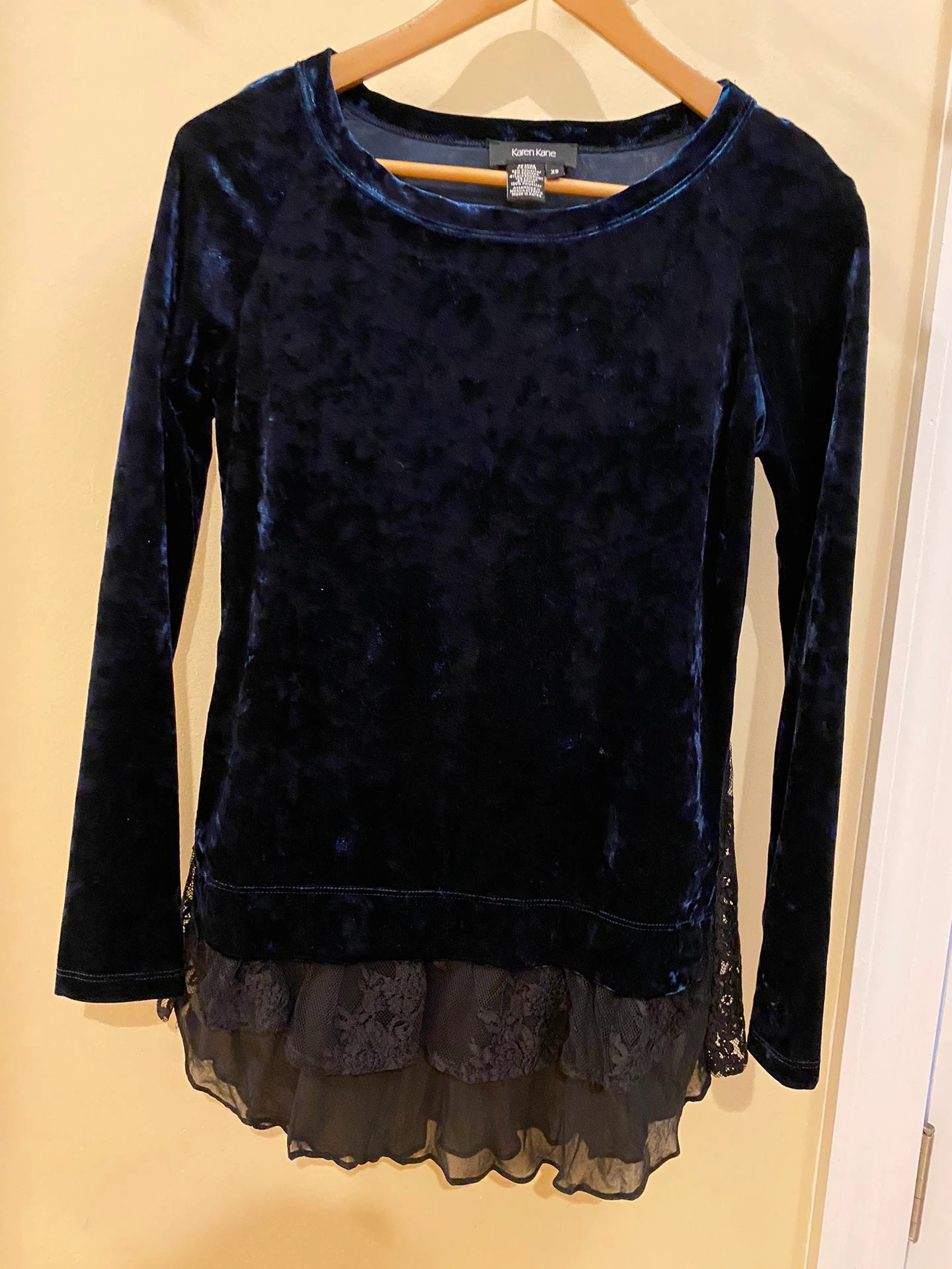 Karen Kane; extra small; velvet/Velour 92% polyester 8% spandex Size: XS Color: Blue Brand: Karen Kane